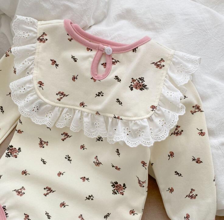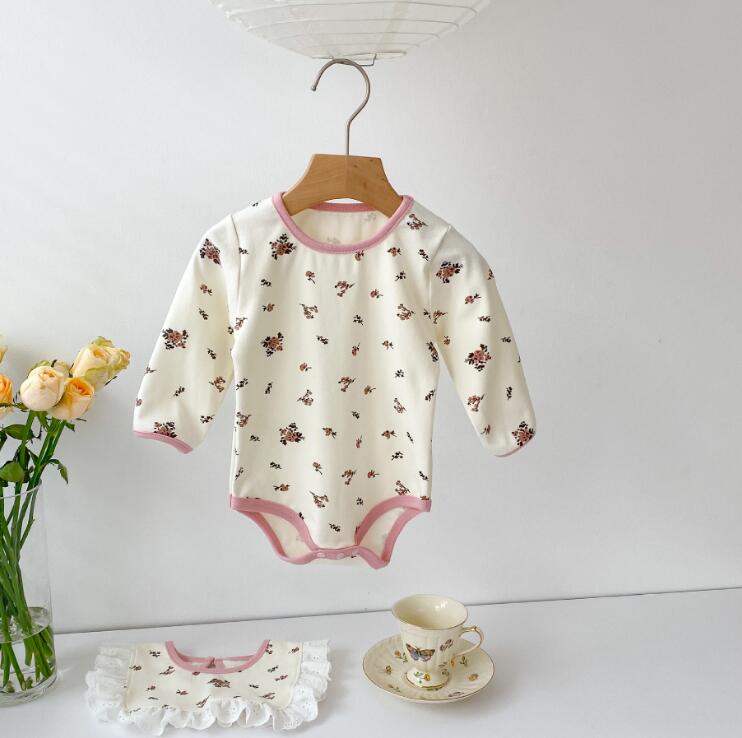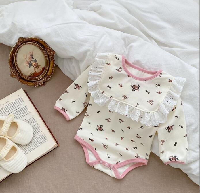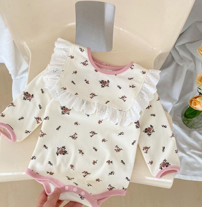 2023新作★ロンパース+よだれかけ★連体服★子供服★ベビー★韓国風子供服★花柄★66-100CM
