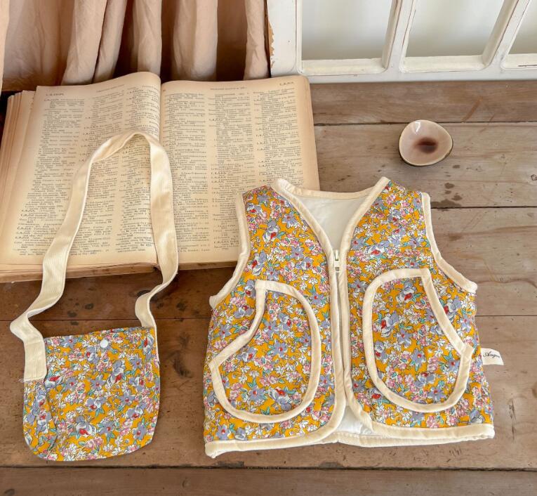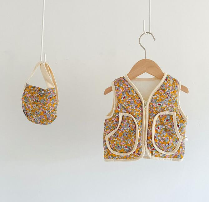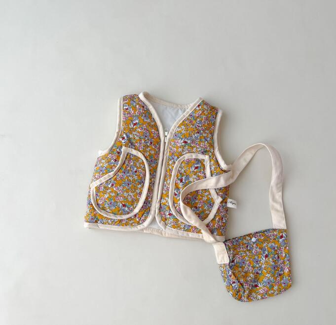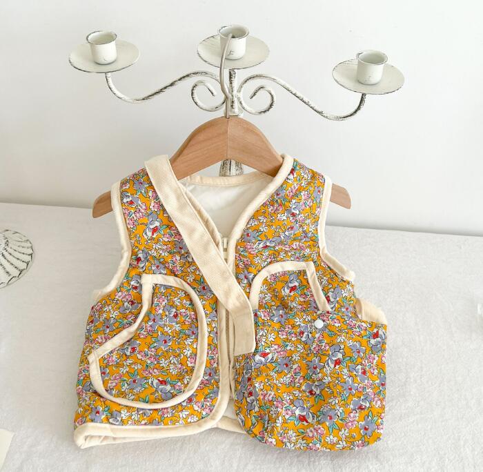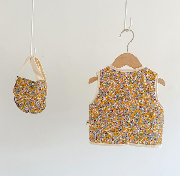 新作★ベスト★チョッキ★トップス+バッグ★子供服★ベビー★花柄★66-100CM