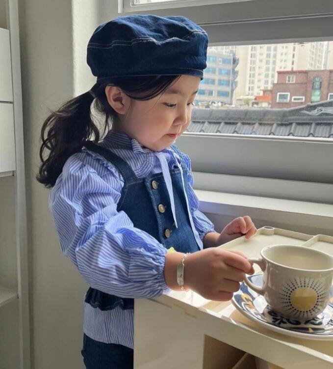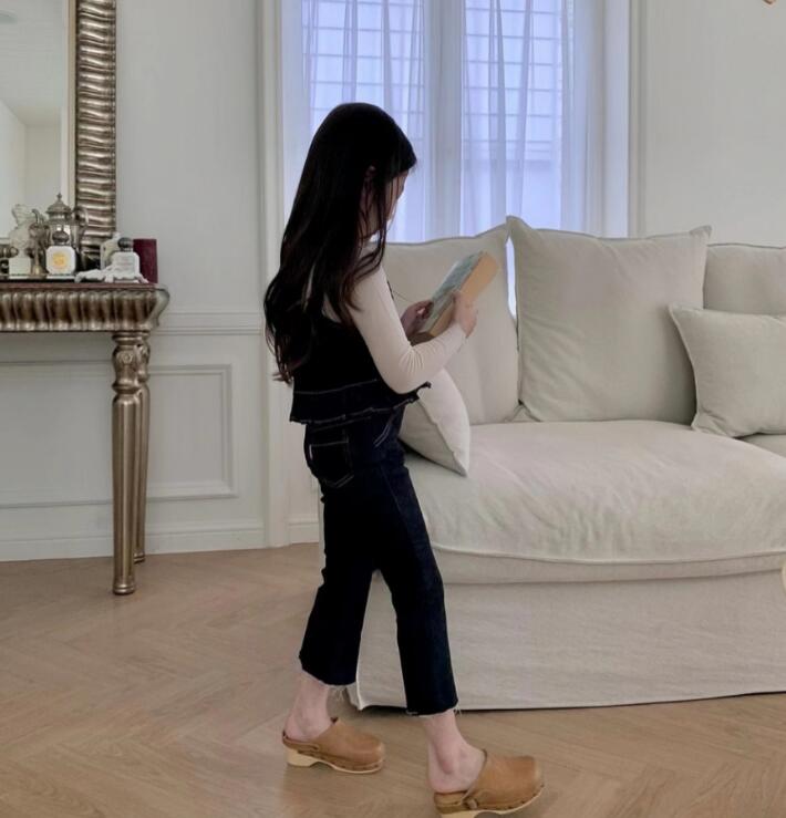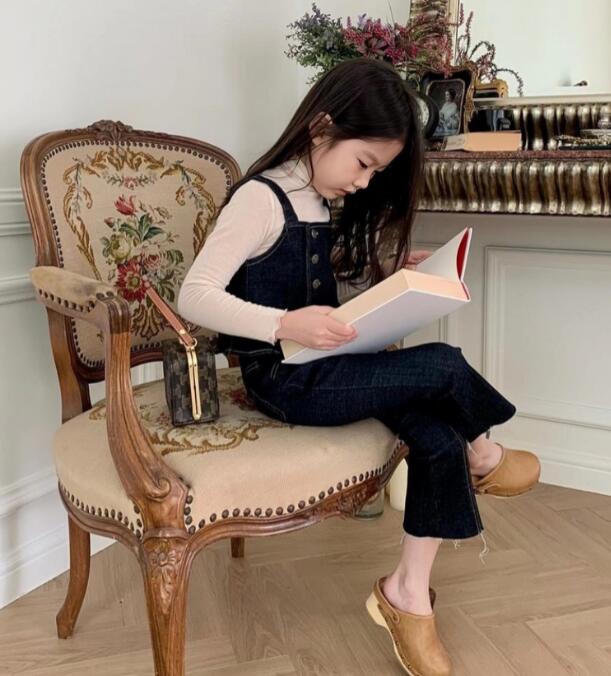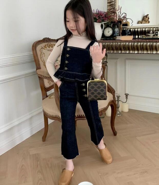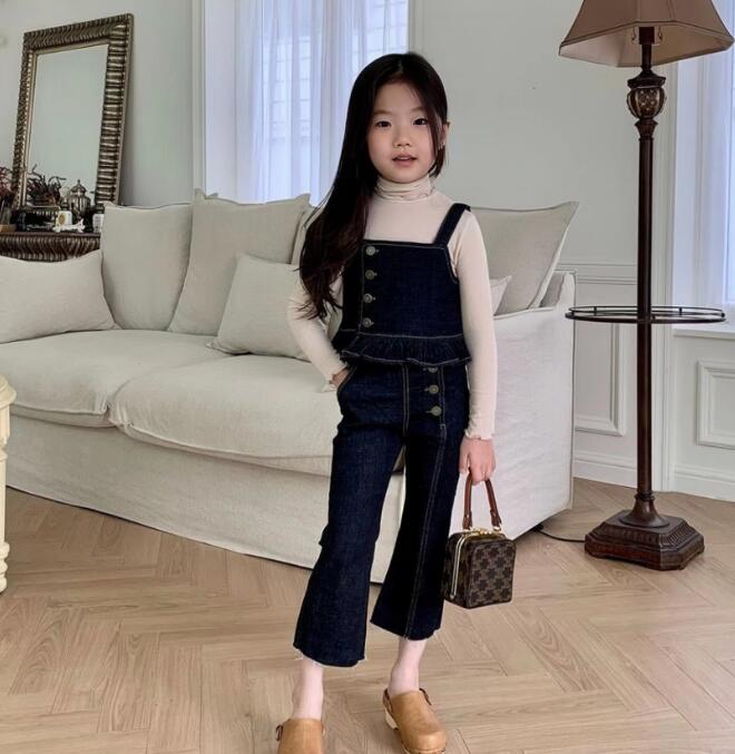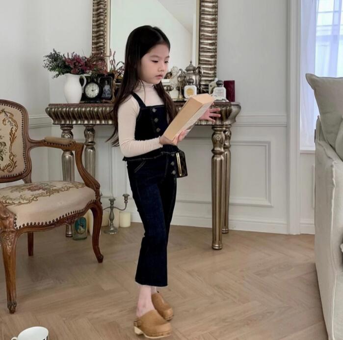 2023新品★子供服 デニム吊りトップス+ズボン セットアップ★80-130cm 2色★2月入荷予定