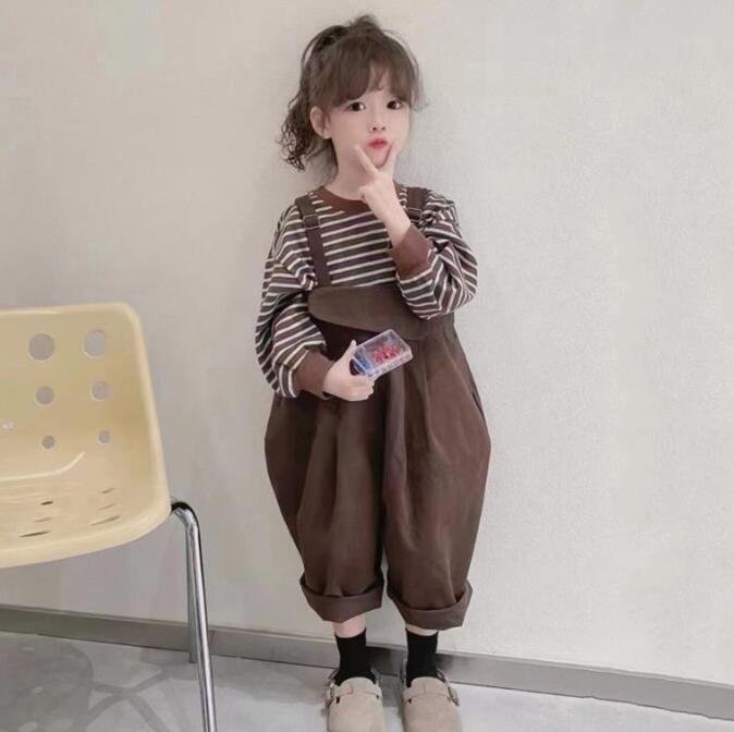 子供服★トップス+サロペット★セットアップ★キッズ女の子★2色★5-13#