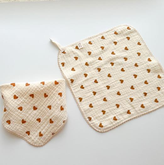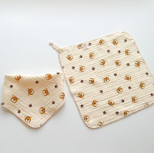 涎掛け★ベビー赤ちゃん食事用エプロン ハンカチ 洗顔タオル 4層★6色