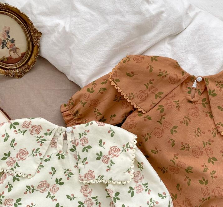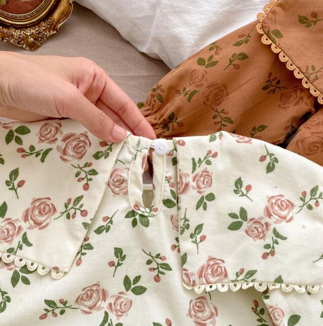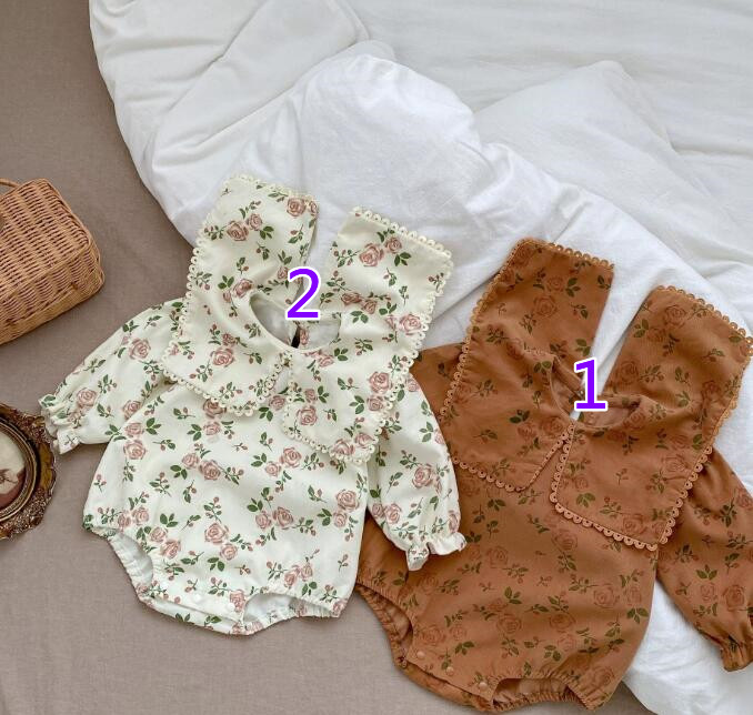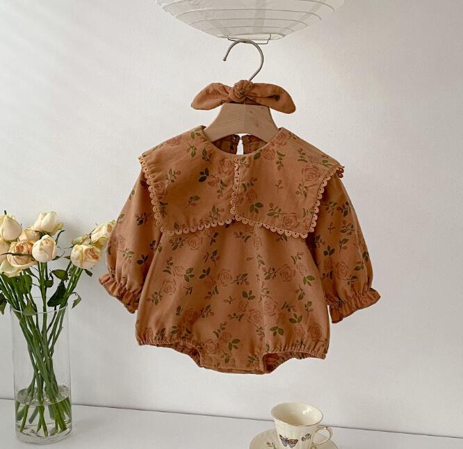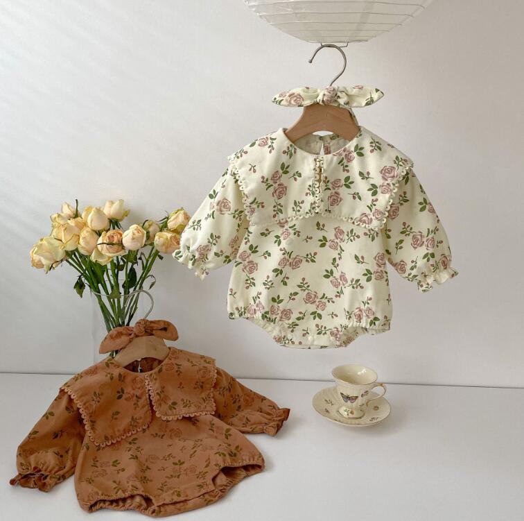 子供服★ロンパース+ヘアバンド★連体服★長袖★ベビー★花柄★2色★66-90CM