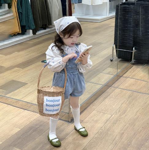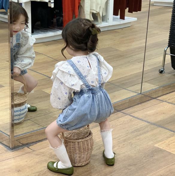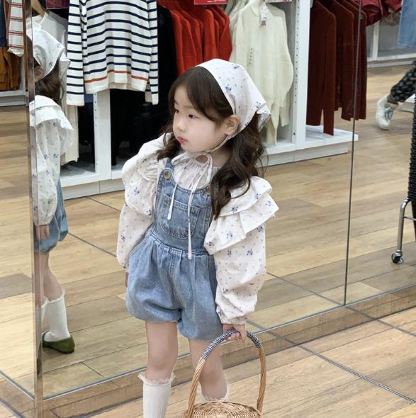 2023春新品★子供服 シャツ+スカーフ&デニムサロペット 分けて販売 90-140cm