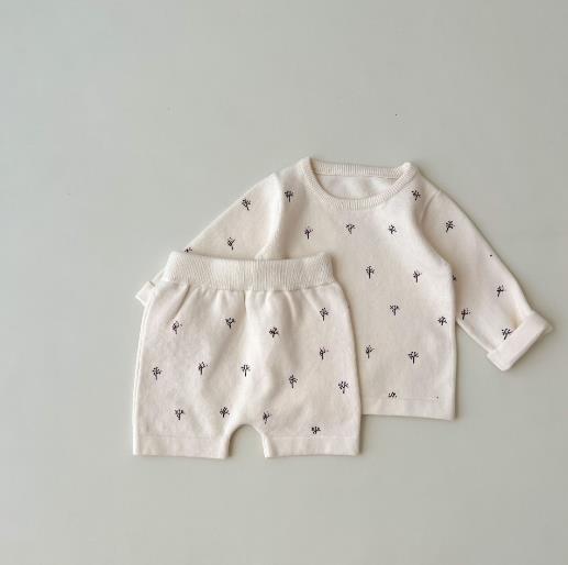 2023春新品★子供服 長袖+ニットショートパンツ セットアップ 66-100cm★2色