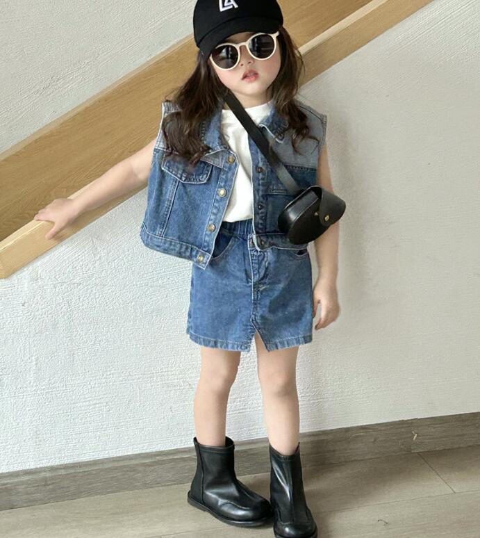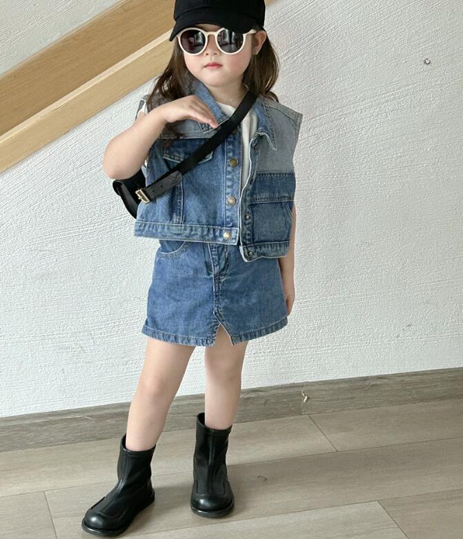 2023新品★子供服 デニムスカート&ベストコート分けて販売★80-130cm★