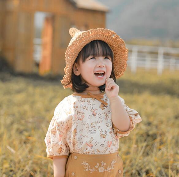 子供用★帽子★キッズ女の子★日焼け防止★麦わら帽子★韓国風★カジュアル★2色