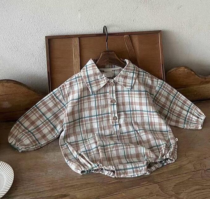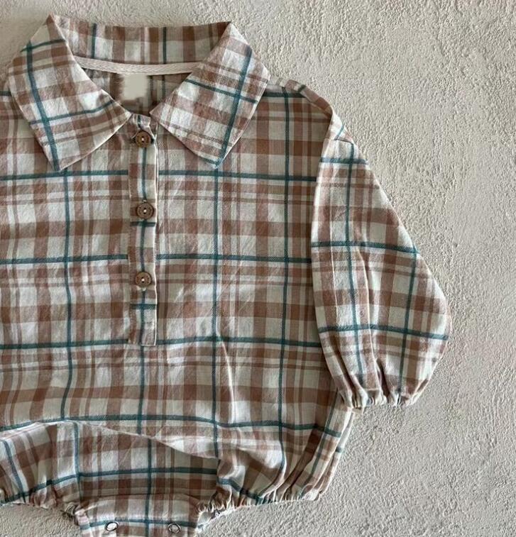 子供服★ロンパース★連体服★ベビー★チェック柄★2色★66-90CM