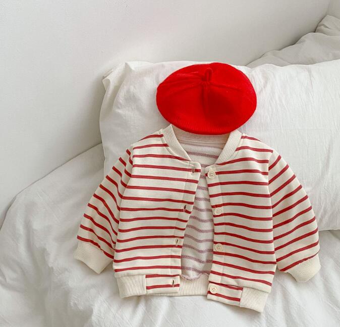 子供服★カーディガン★トップス★韓国風子供服★ベビー★ストライプ★2色★66-100CM