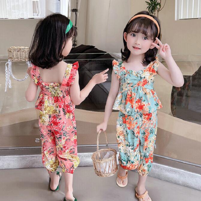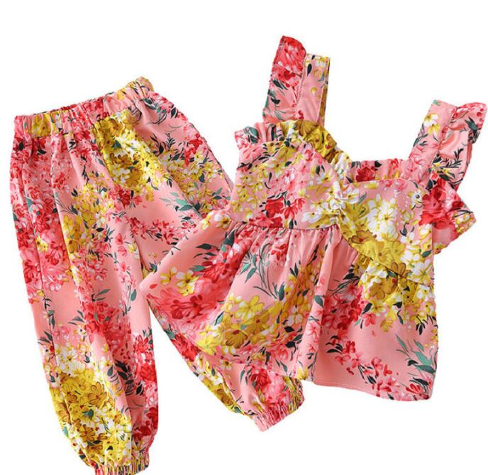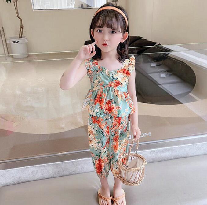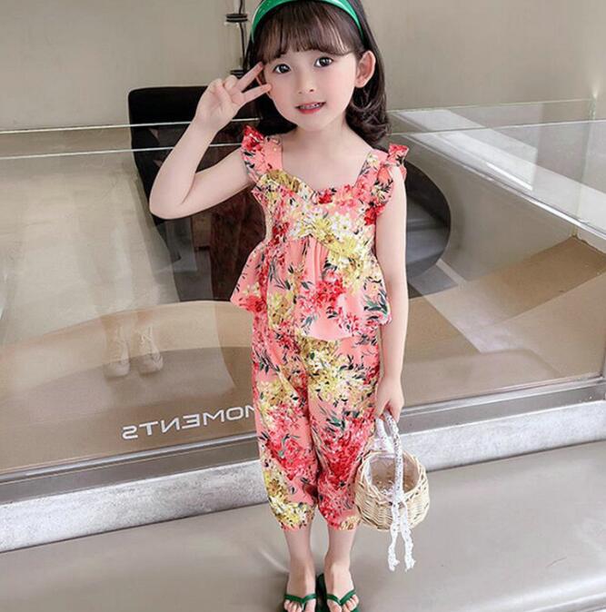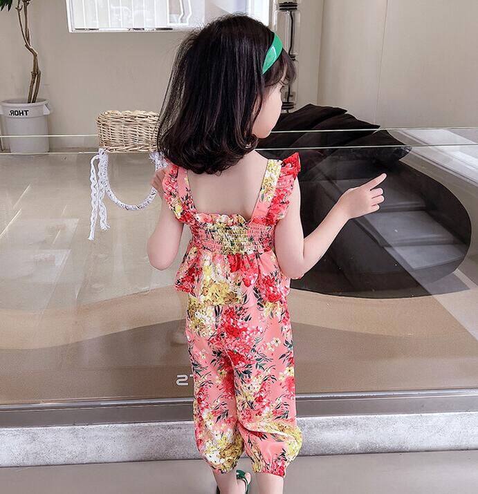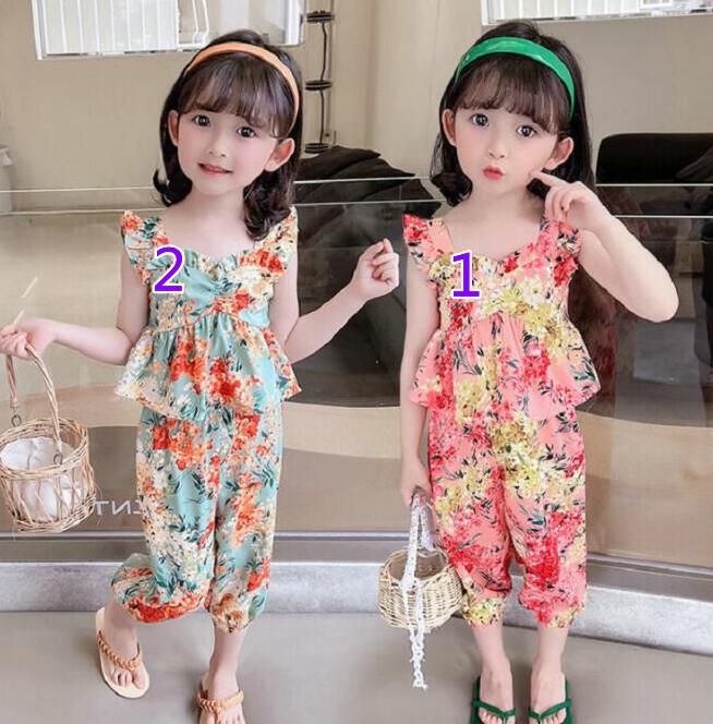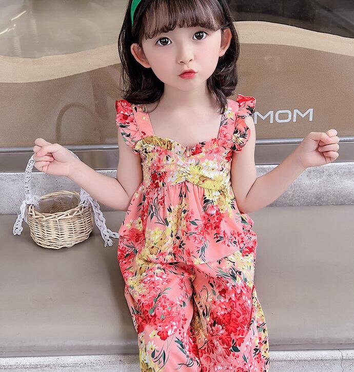 子供服★ベスト+ズボン★セットアップ★韓国風子供服★キッズ女の子★花柄★2色★7-15#