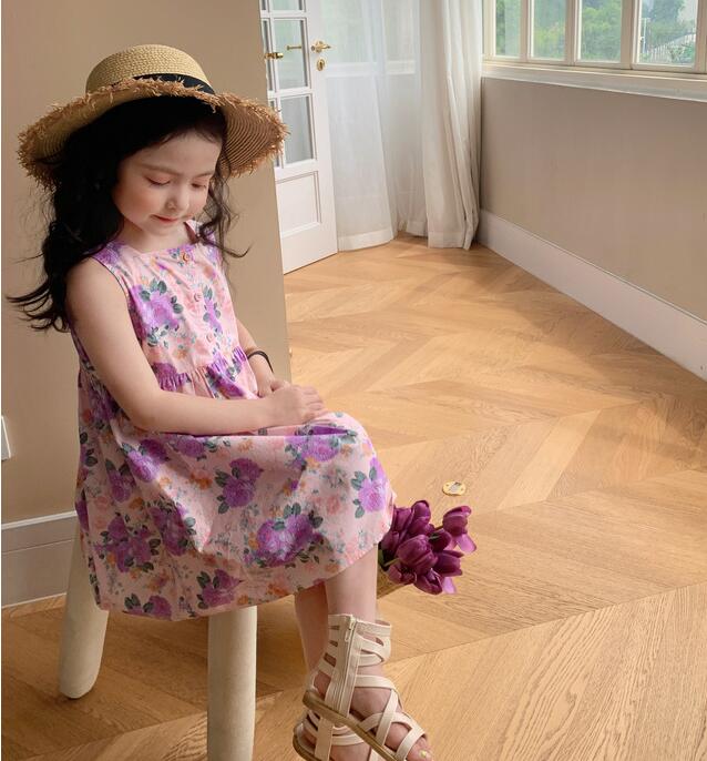 子供服★ワンピース★ノースリープ★韓国風子供服★キッズ女の子★花柄★2色★7-15#