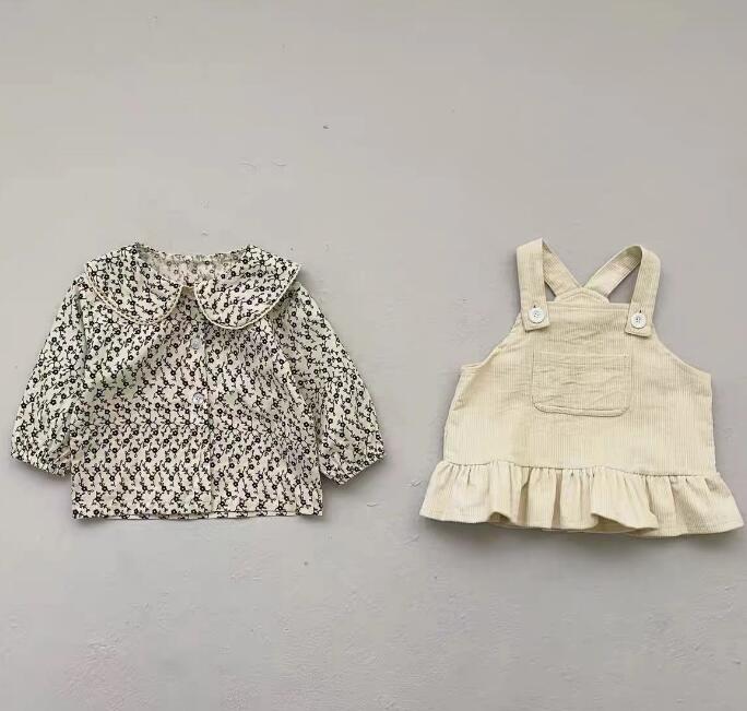 子供服★長袖シャツ+サロペットスカート★セットアップ★韓国風子供服★キッズ★80-130CM