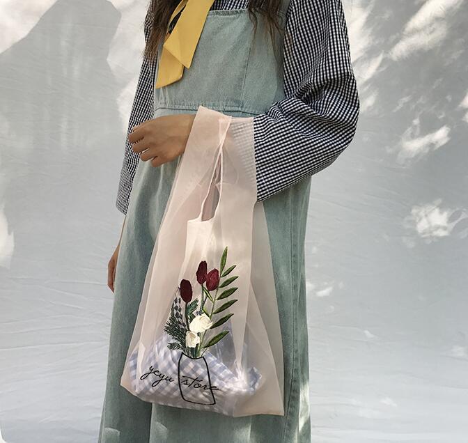 バッグ★花柄★レース 刺繍★ハンドバッグ★手提げバッグ★透け★薄手★3色