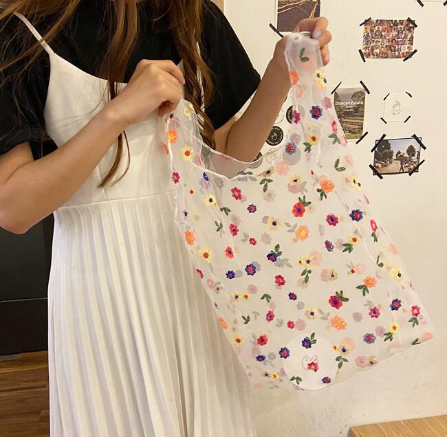 バッグ★花柄★レース 刺繍★ハンドバッグ★手提げバッグ★透け★大容量★