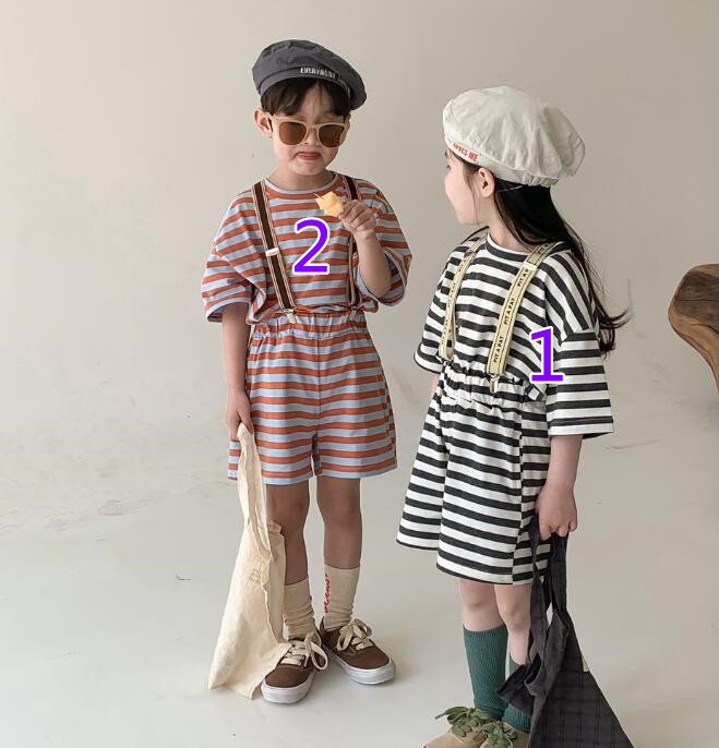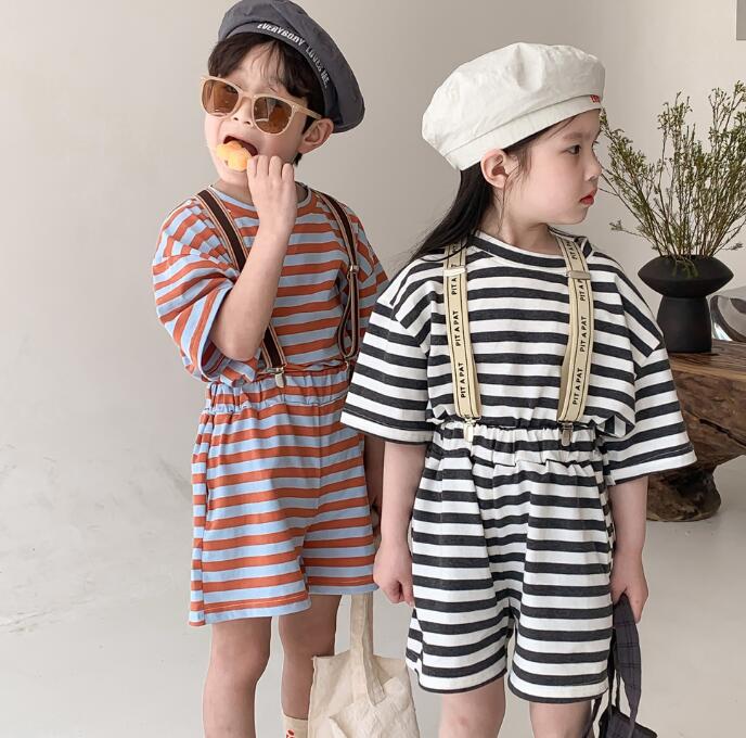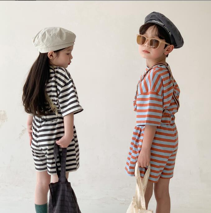 子供服★トップス+パンツ★セットアップ★韓国風子供服★男女兼用★ストライプ★2色★80-140CM