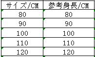 ◆サイズ:身長でご選択ください
