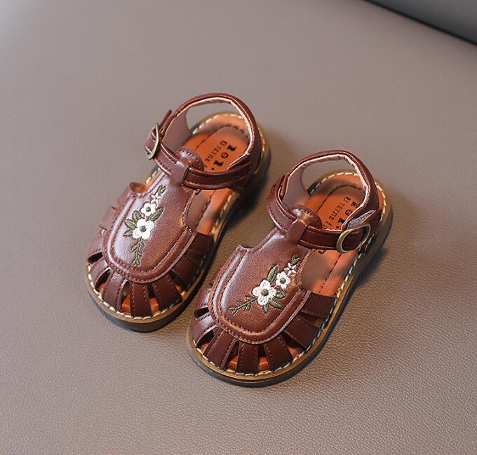 靴★子供靴★キッズ靴★サンダル★キッズ女の子★カジュアル★刺繍★2色「21-30#」