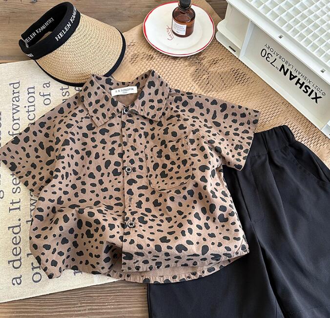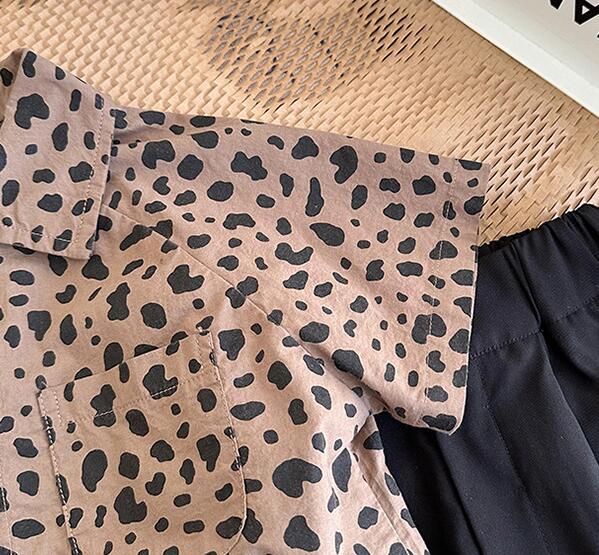 子供服★トップス★ワイシャツ★韓国風子供服★キッズ男の子★レオパード★2色★90-140CM