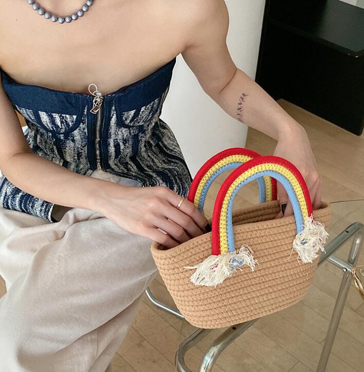 新登場★レディースバッグ 棉麻編み収納袋★2色