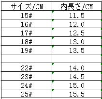 内の長さ:サイズ表をご参考ください。