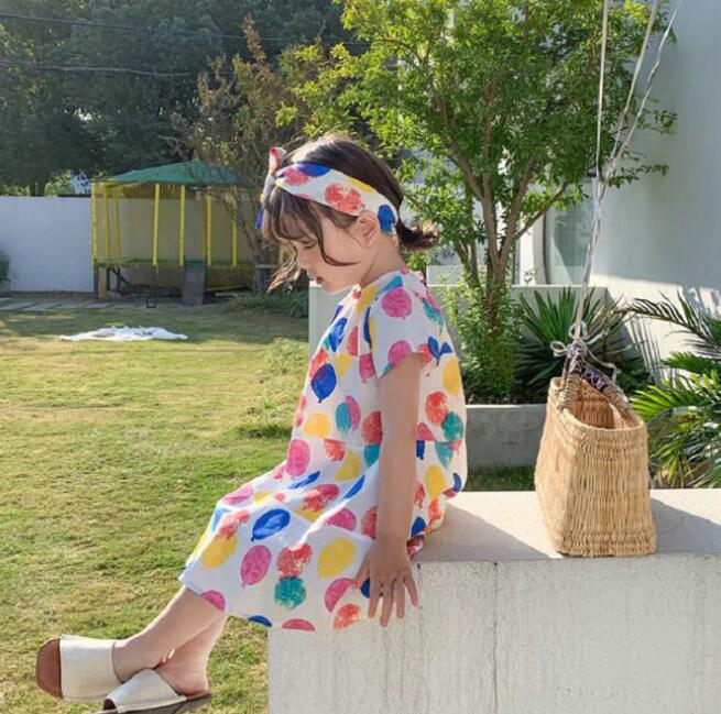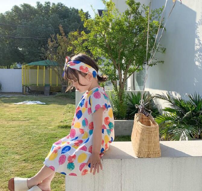 子供服★ワンピース+ヘアバンド★韓国風子供服★キッズ女の子★7-15#