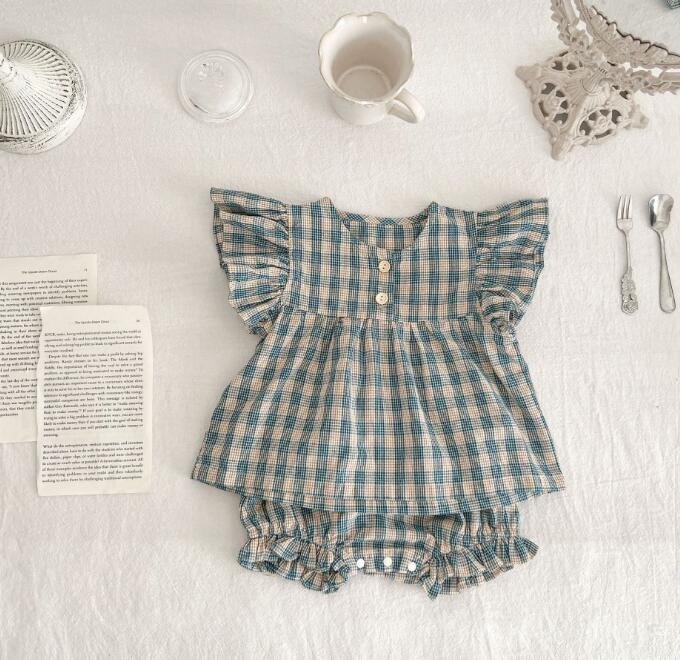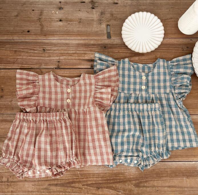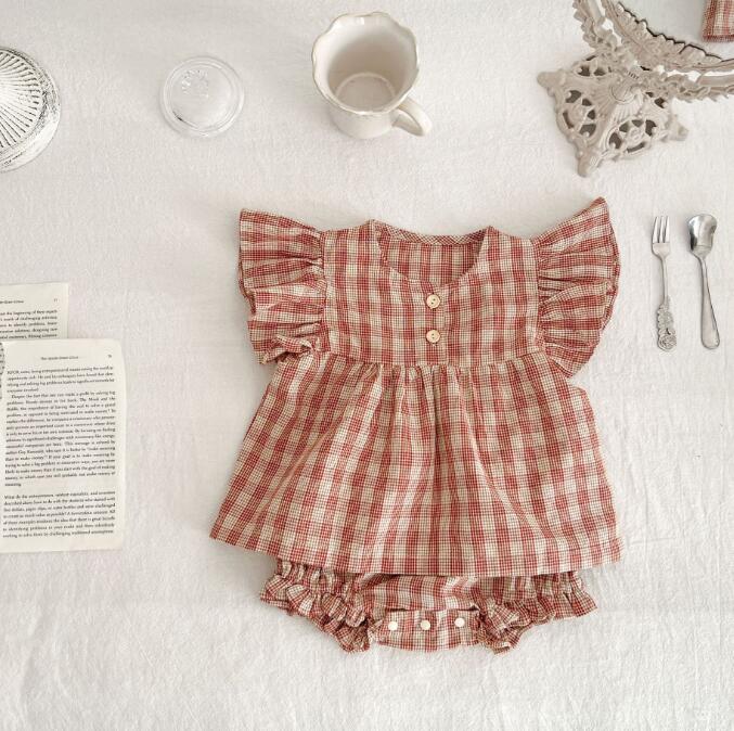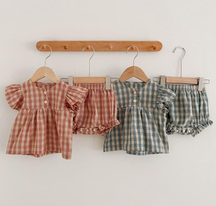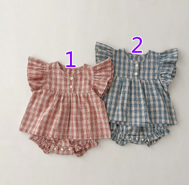 子供服★トップス+パンツ★セットアップ★韓国風子供服★ベビー★チェック柄★2色★66-100CM