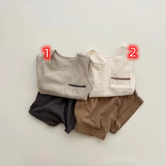 現在カテゴリ:全て商品 > 2023夏新品★子供服 ベスト+ショートパンツ セットアップ 73-100cm★2色