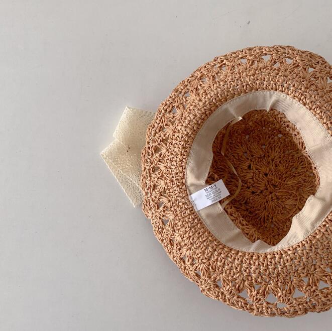 子供用★帽子★日焼け防止★麦わら帽子★キッズ女の子★リボン★砂浜★3色