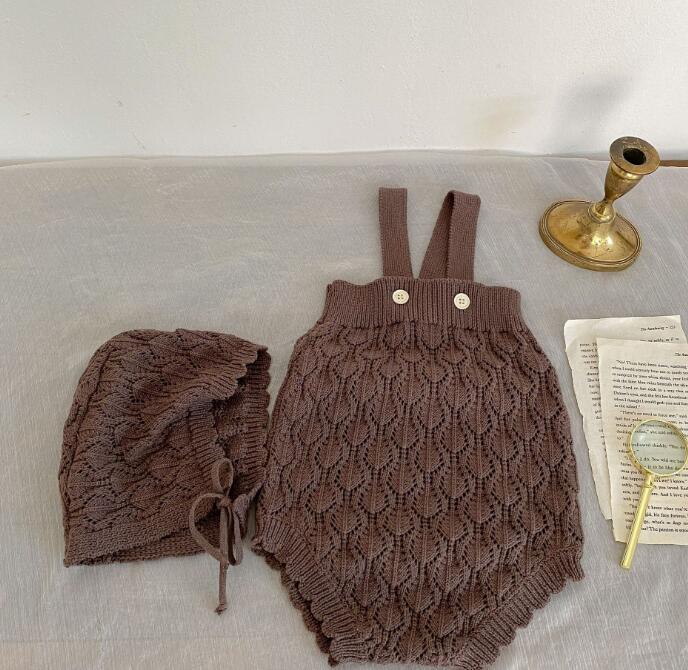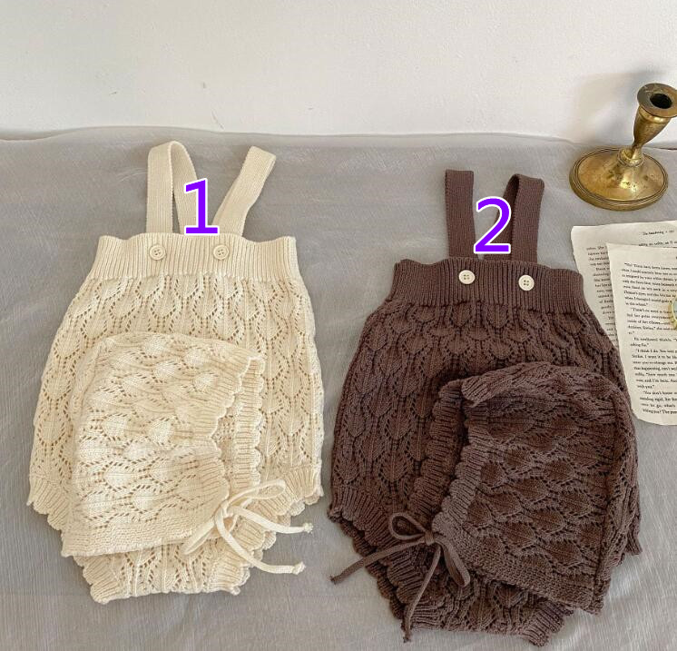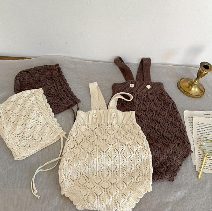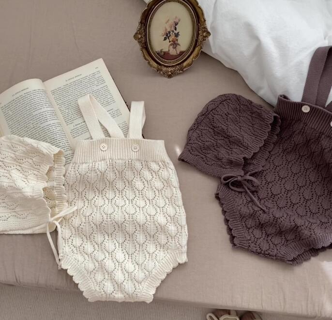 子供服★ロンパース+帽子★連体服★ニット★韓国風子供服★ベビー★無地★2色★66-100CM