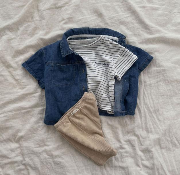 現在カテゴリ:全て商品 > 2023春夏新品★子供服 半袖+ショートパンツ デニムセットアップ 66-120cm★2色