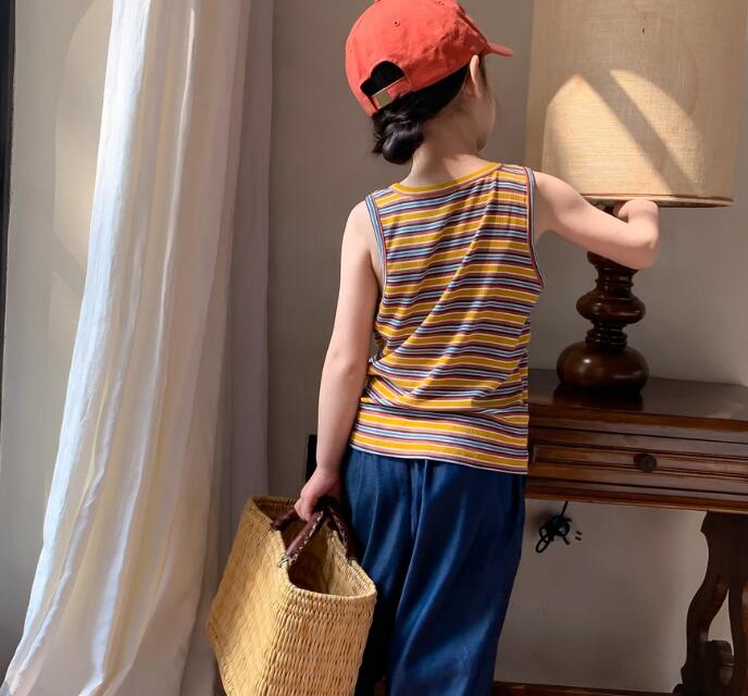 子供服★ベスト★トップス★韓国風子供服★キッズ女の子★ストライプ★2色★90-150CM