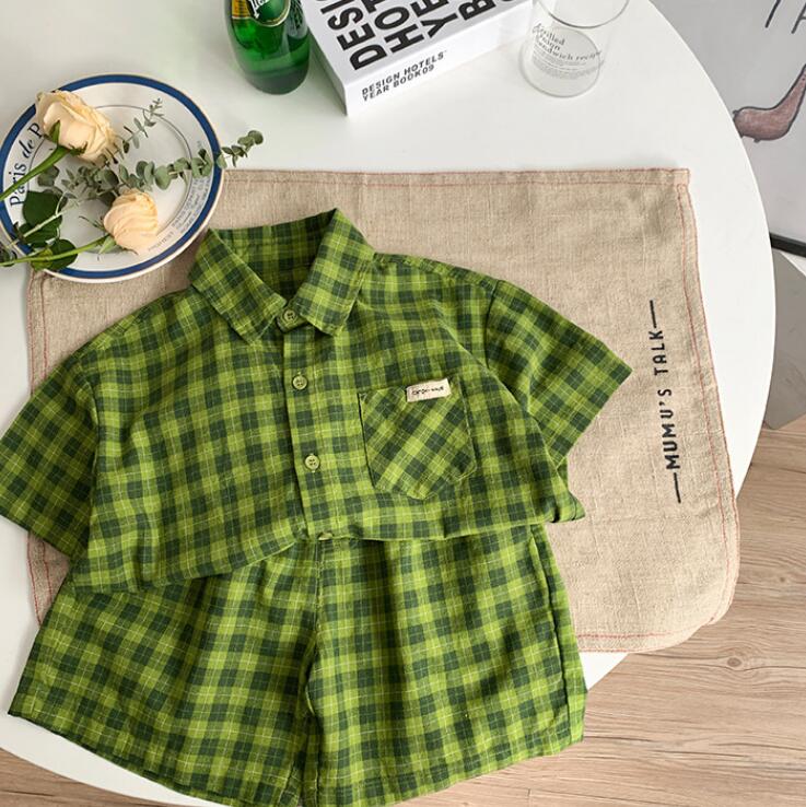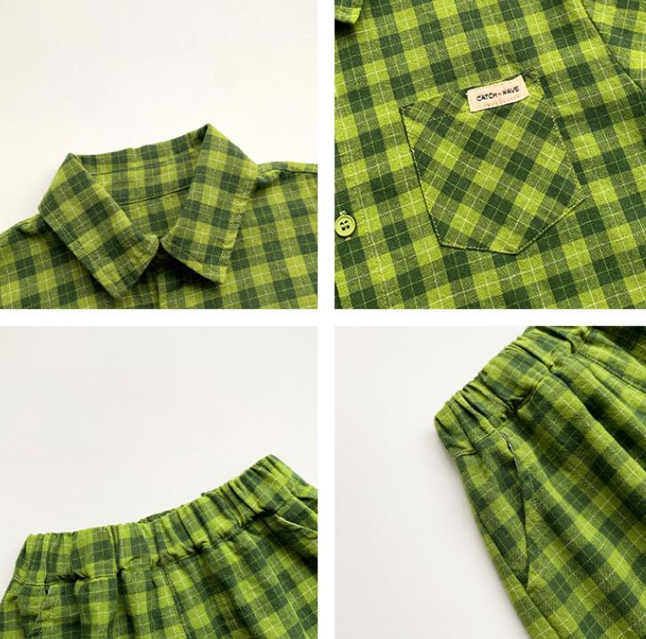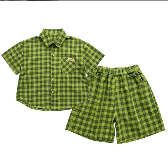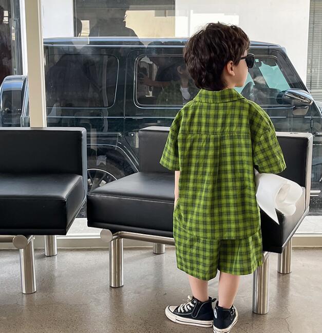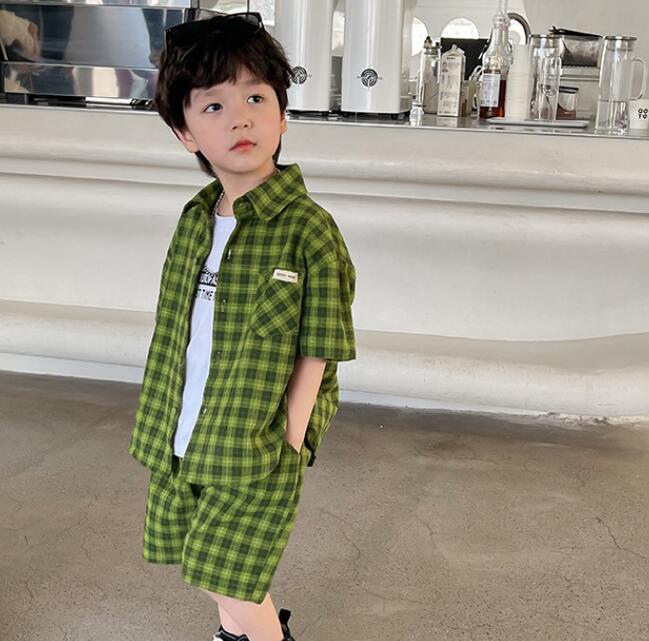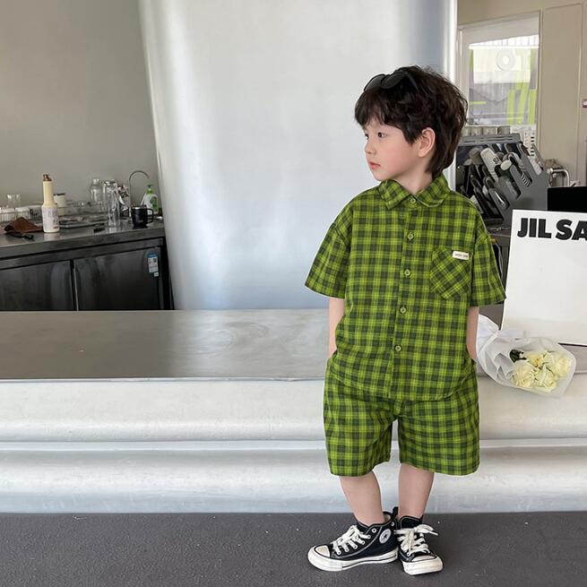 子供服★ワイシャツ+パンツ★セットアップ★韓国風子供服★キッズ男の子★チェック柄★90-140CM
