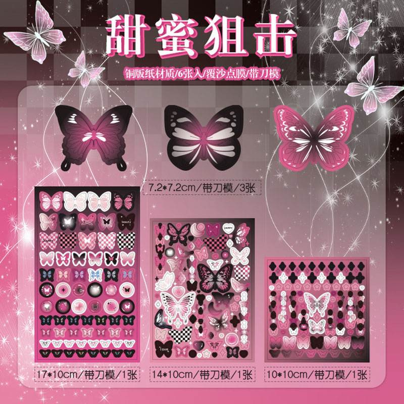 春夏 文具 シール貼紙 手帳素材 封口貼 sweetcool キラキラ 花蝶 泡パプル 幾何学チェック柄 6枚入