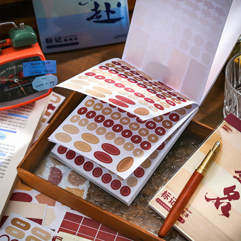 春夏新作 カフェ風 文具 シール貼紙 手帳素材 封口貼 幾何学ラベル 数字文字 45枚入