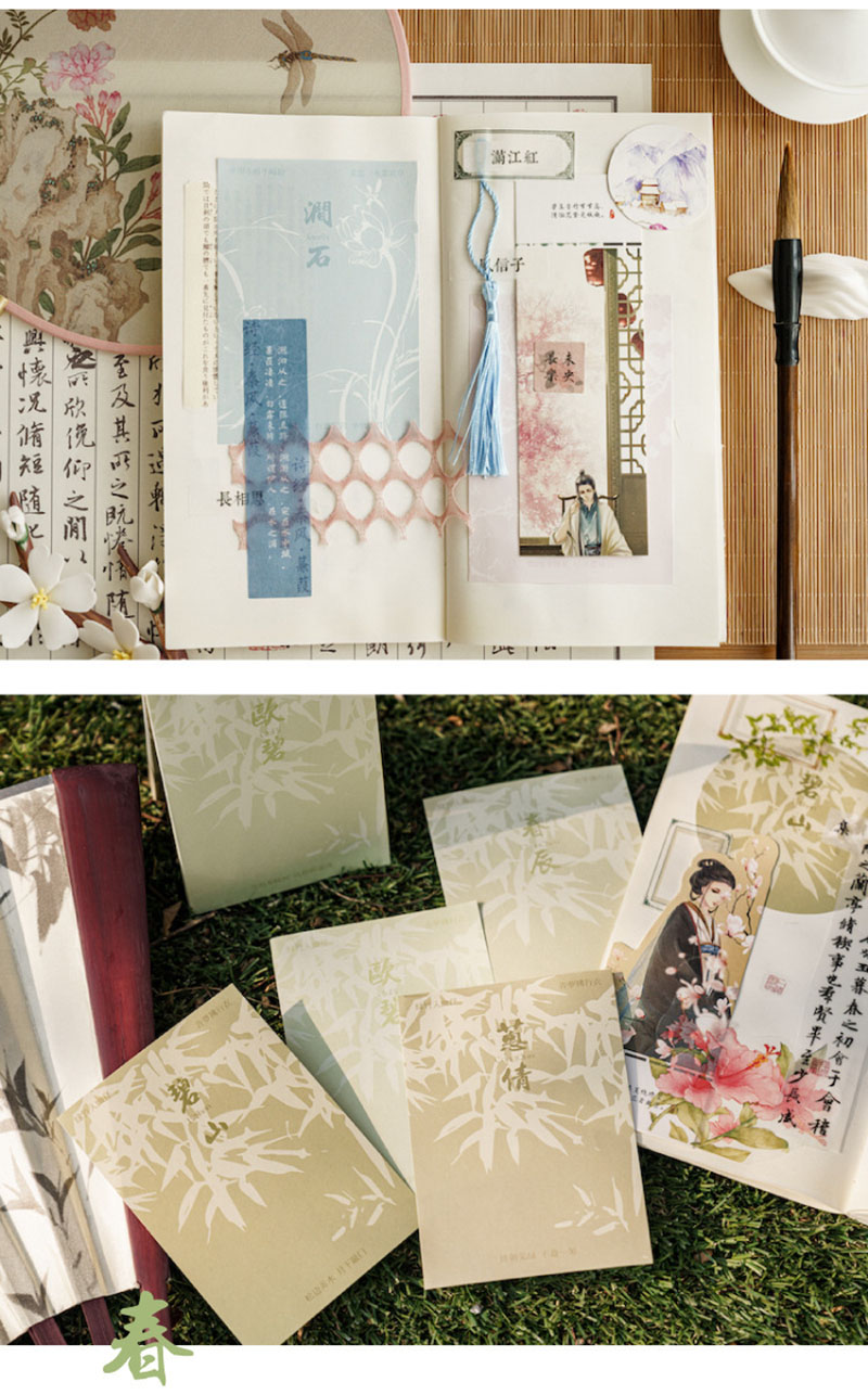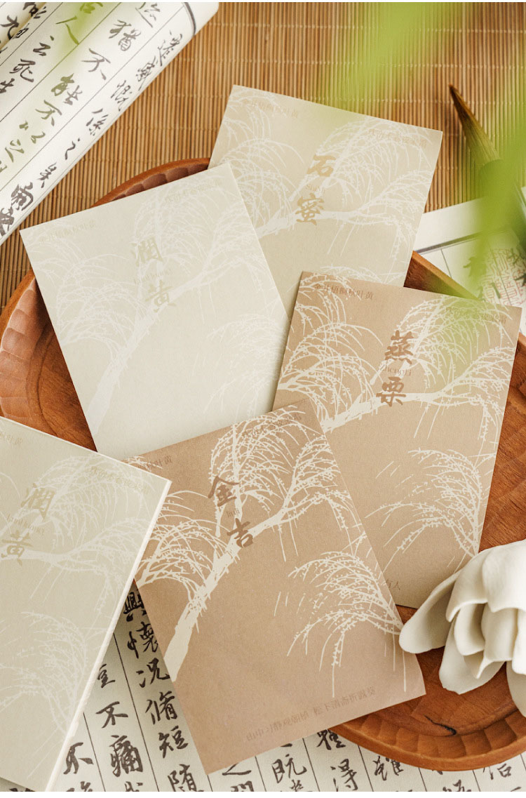 カフェ風 文具 素材紙メモ紙 手帳素材 アンティーク 春夏新作 植物花葉 竹 中華風絵 イラスト 60枚入