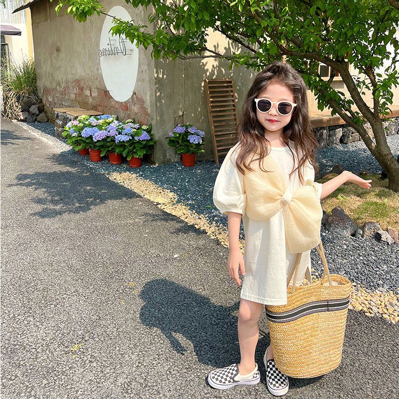 現在カテゴリ:全て商品 > お勧め 春夏新作 韓国風 子供服 3-8歳女の子 半袖ワンピース リボン ワンピ ロングTシャツ 2色 5-13