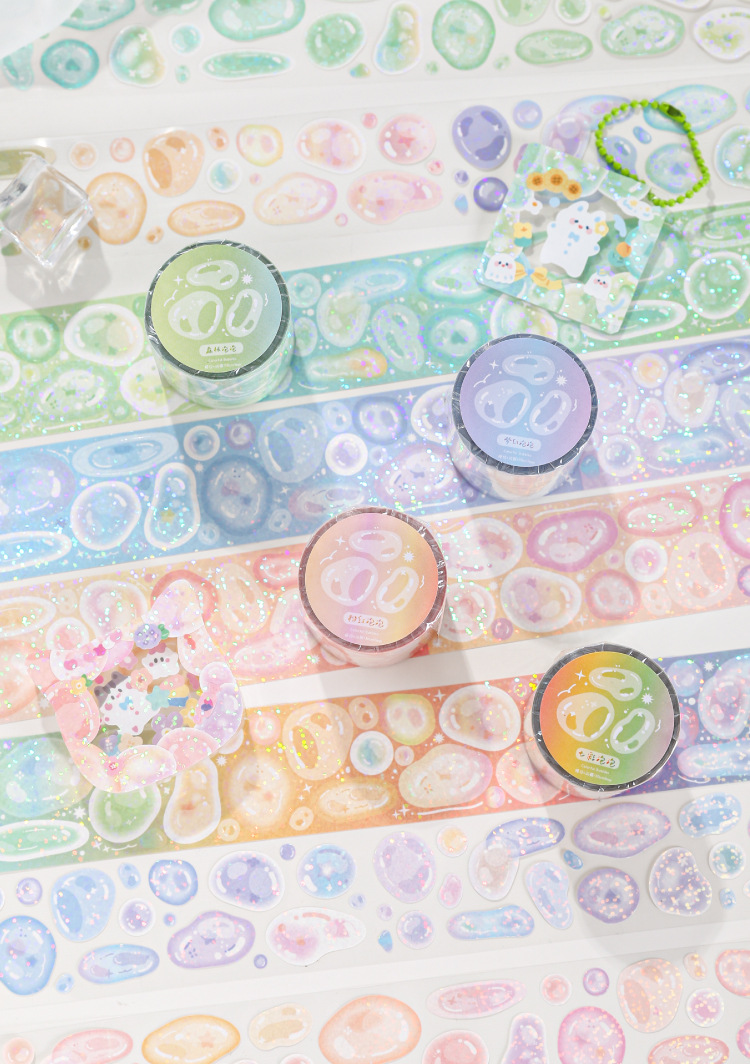 春夏新作 文具 シール貼紙 手帳素材 マスキングテープ 封口貼 キラキラ 泡パプル ピンキーカラー 40mm*2m