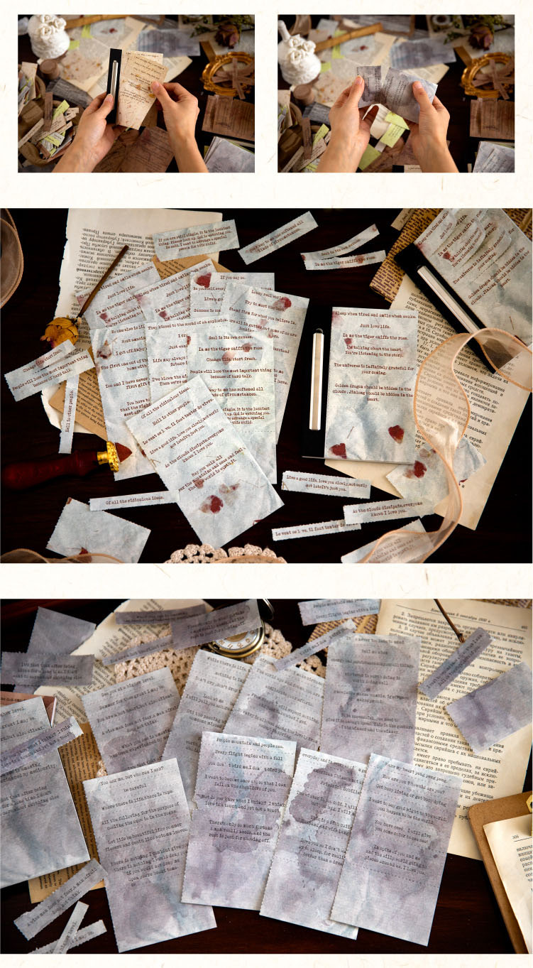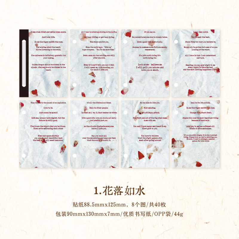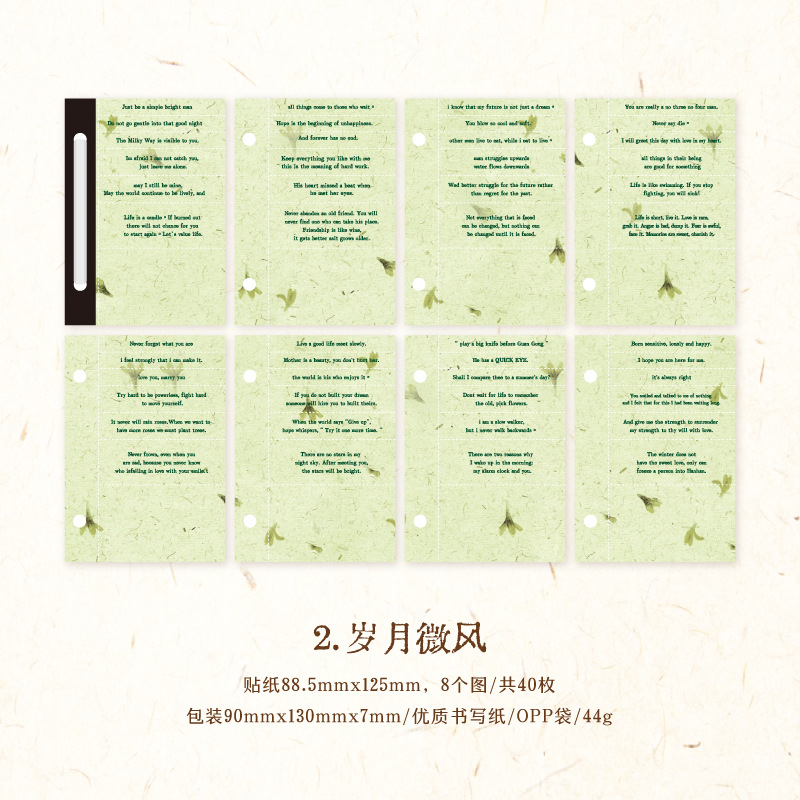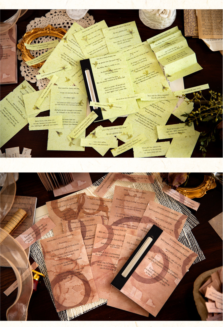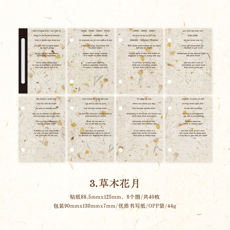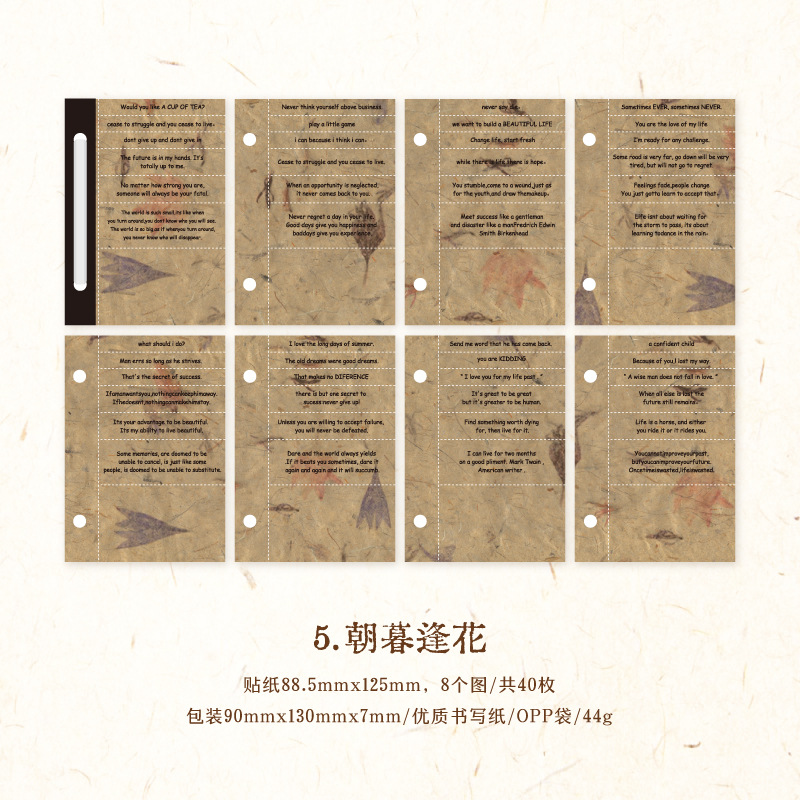 文具 素材紙メモ紙 手帳素材 アンティーク イラスト 幾何学ラベル文字単語 植物花葉 40枚入