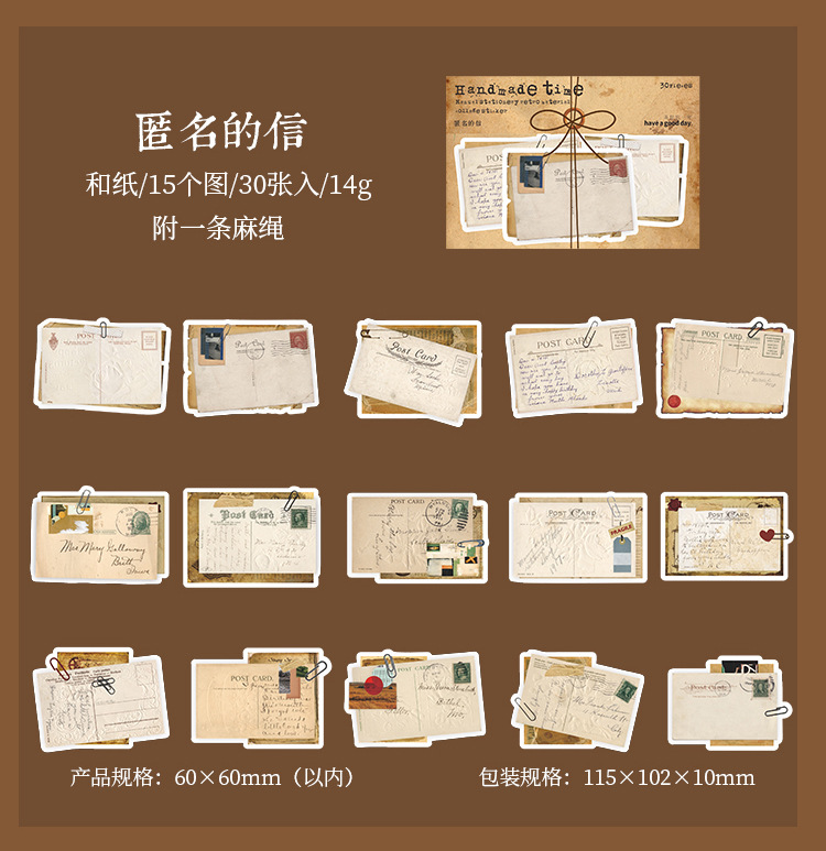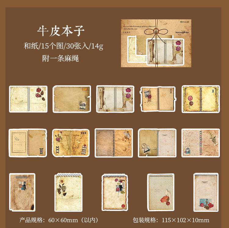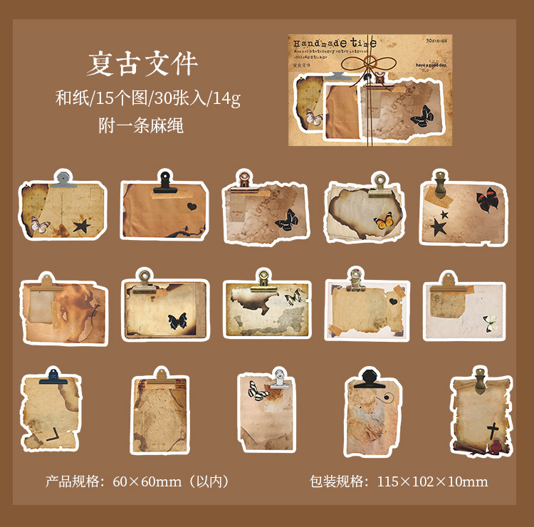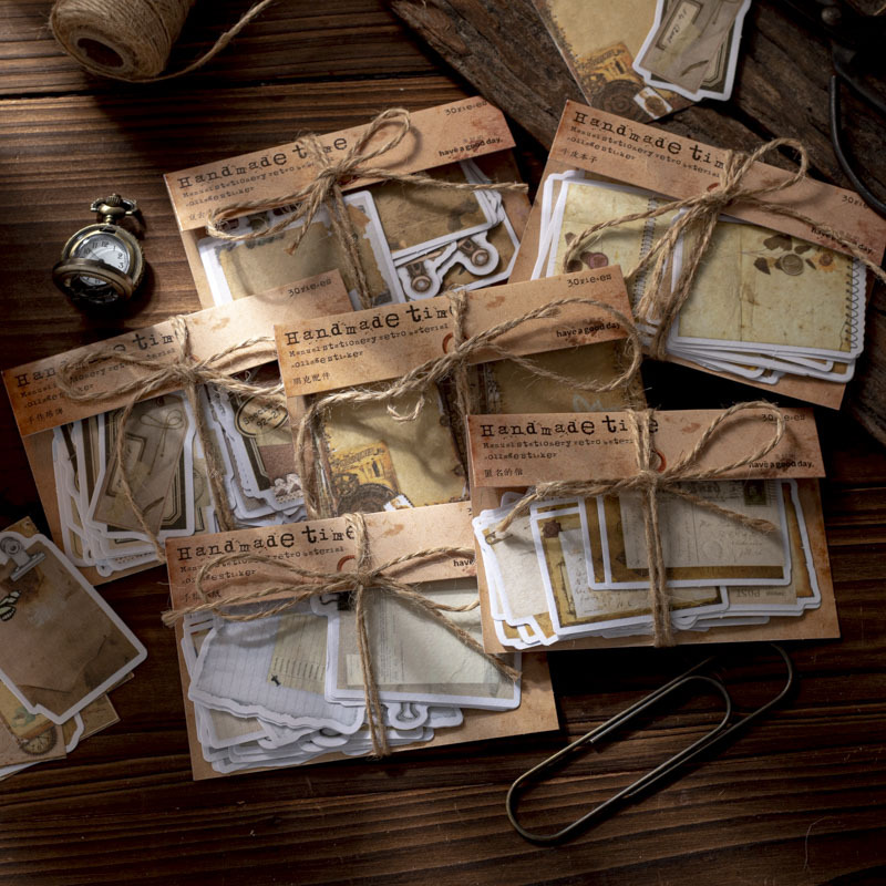 文具 シール貼紙 封口貼 アンティーク 手帳素材 幾何学ラベル 植物花蝶 雑貨 イラスト 30枚入