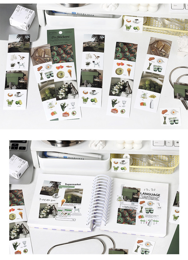 文具 シール貼紙 手帳素材 封口貼 写真撮影 グルメ食べ物 人物植物動物風景 日常生活 春夏新作 6枚入