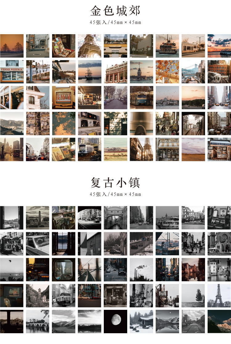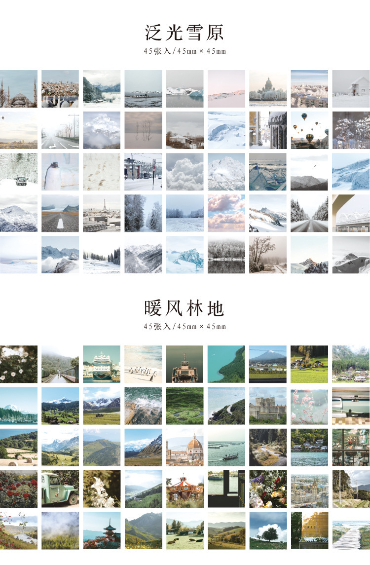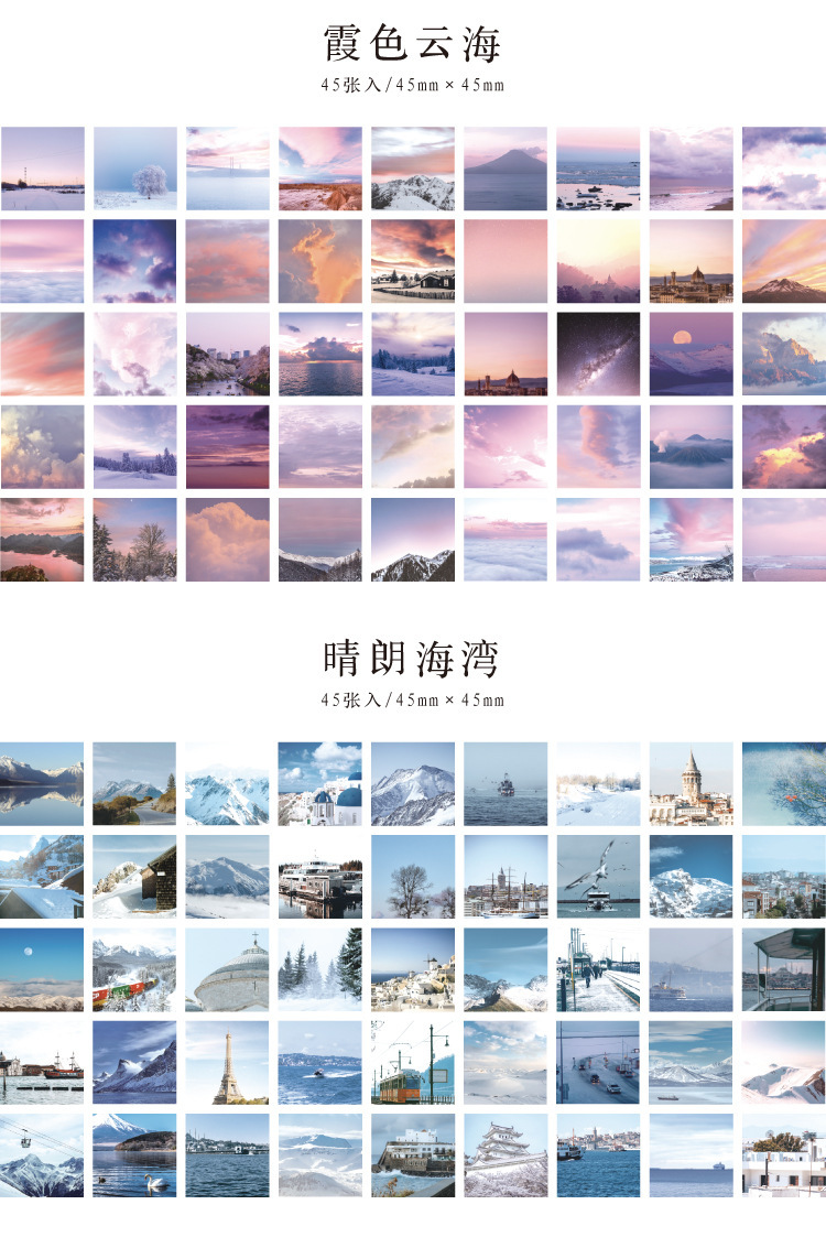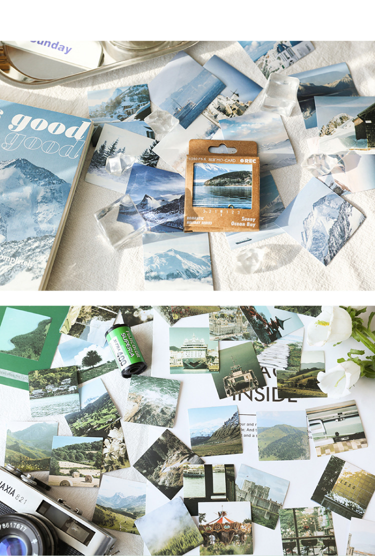 文具 シール貼紙 手帳素材 封口貼 アンティーク 春夏新作 写真撮影 風景 植物 旅行 海ビーチ 青い空 45枚入