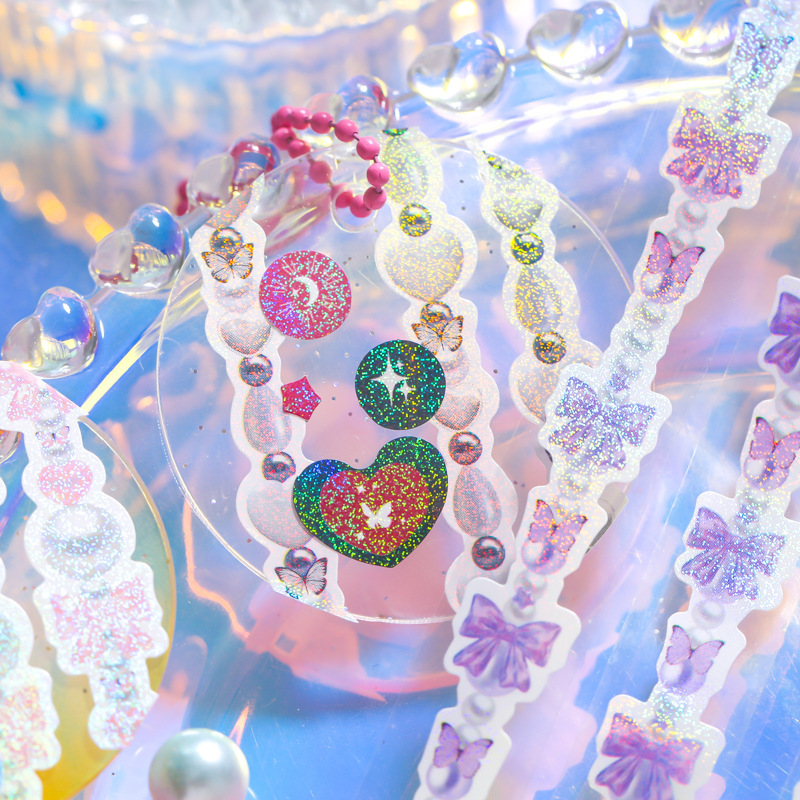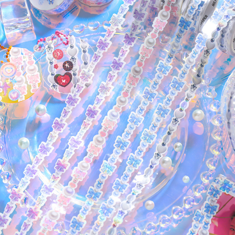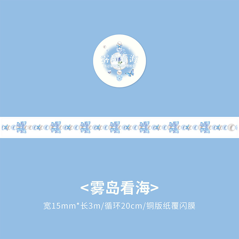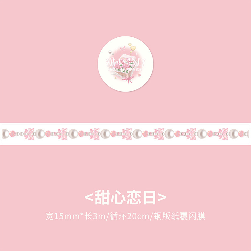 文具 シール貼紙 手帳素材 マスキングテープ キラキラ 春日 幾何学 蝶 リボン ハート パール 15mm*3m