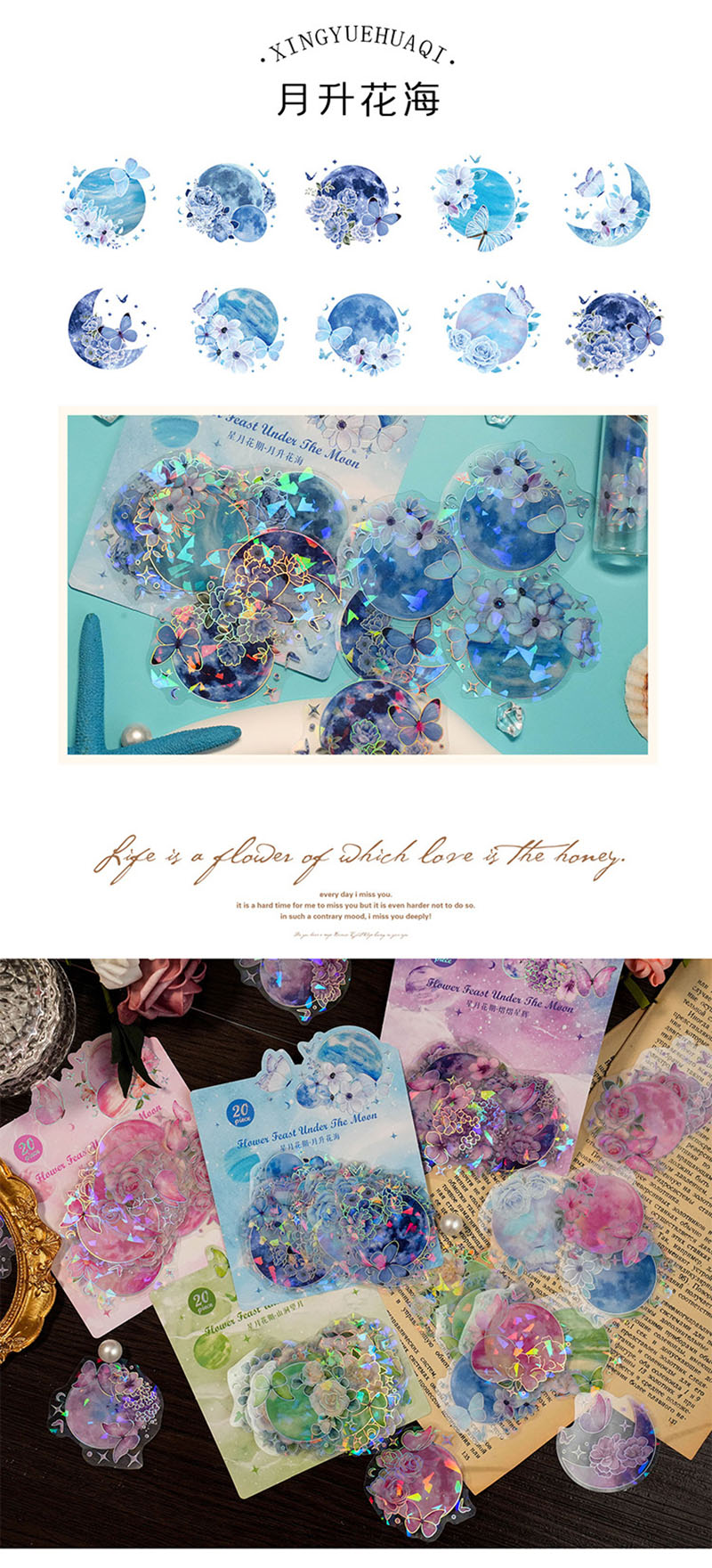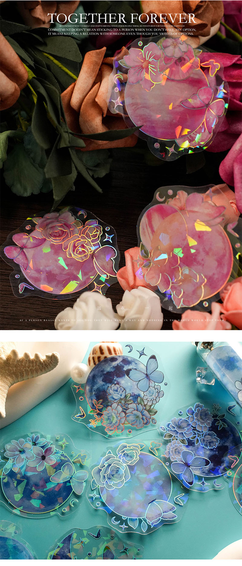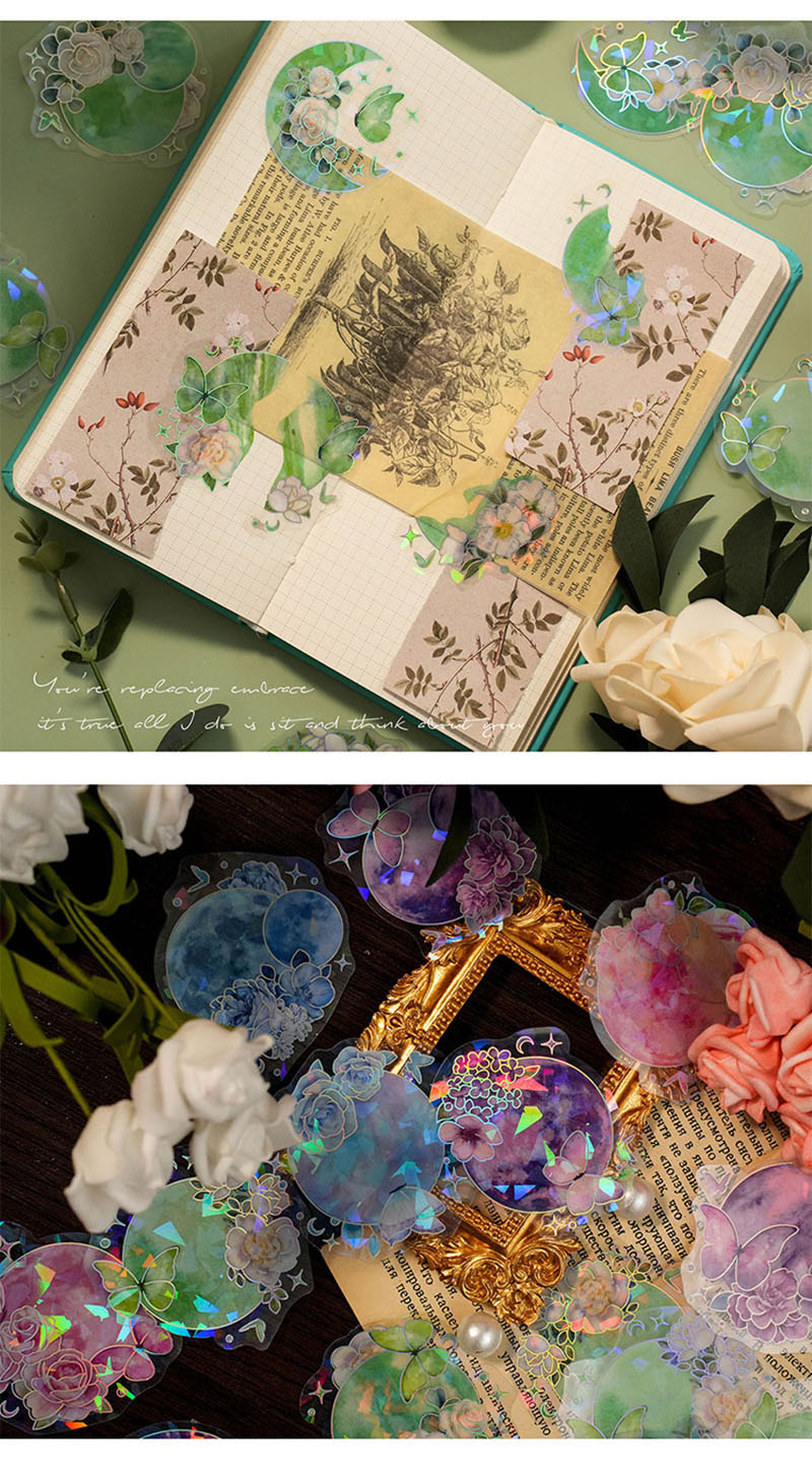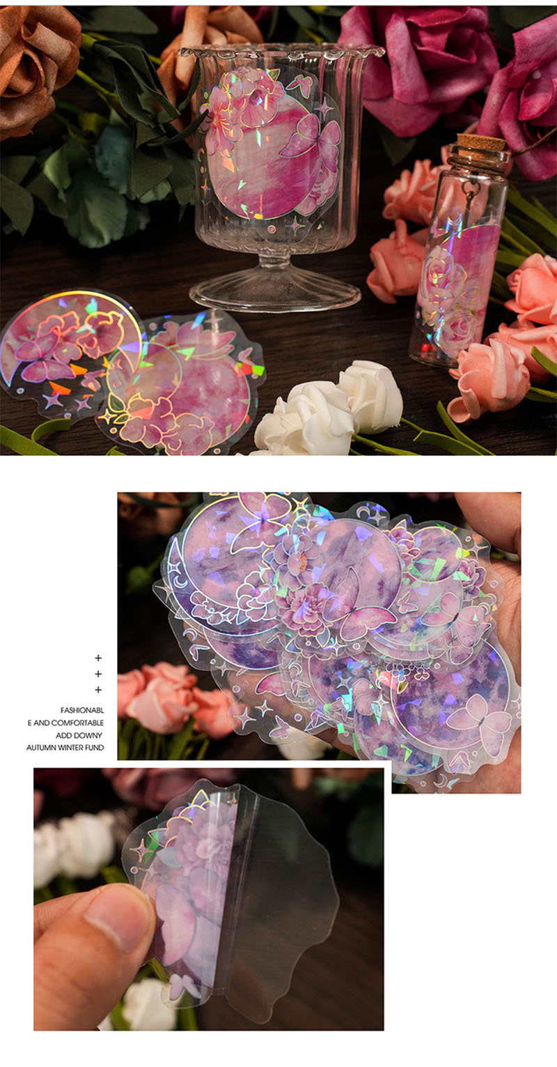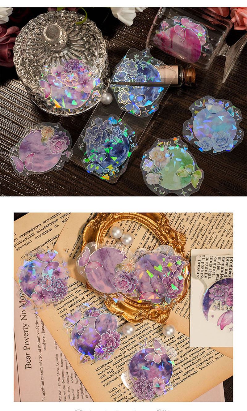 文具 手帳素材 封口貼 PETシール貼紙 キラキラフラワー 春日 ラベル 植物 花葉蝶 20枚入