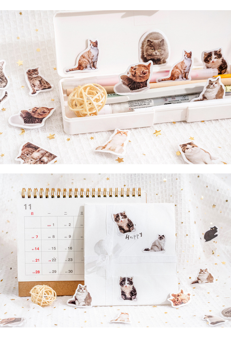 現在カテゴリ:全て商品 > 塩系文具 シール貼紙 手帳素材 封口貼 春新作 可愛い アニマル動物 猫図鑑 45枚入