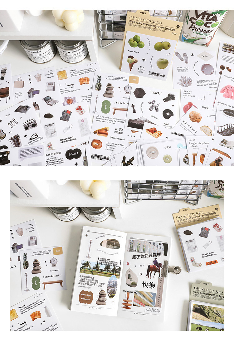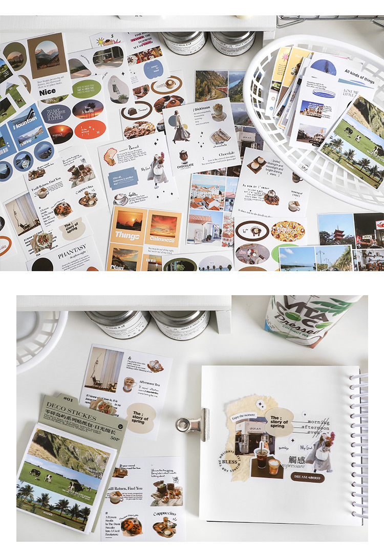 文具 シール貼紙 手帳素材 春新作 封口貼 日常生活 風景 グルメ食べ物 人物動物 写真撮影 旅行 50枚入