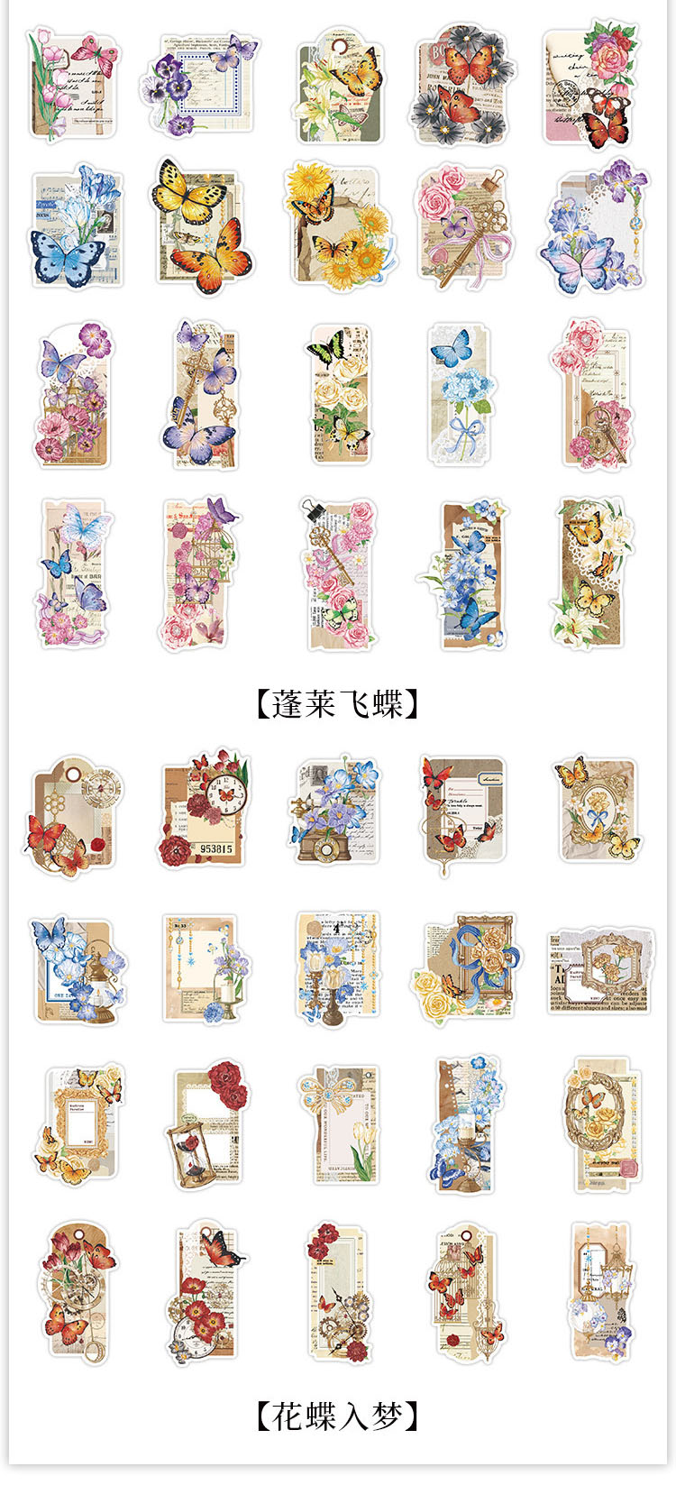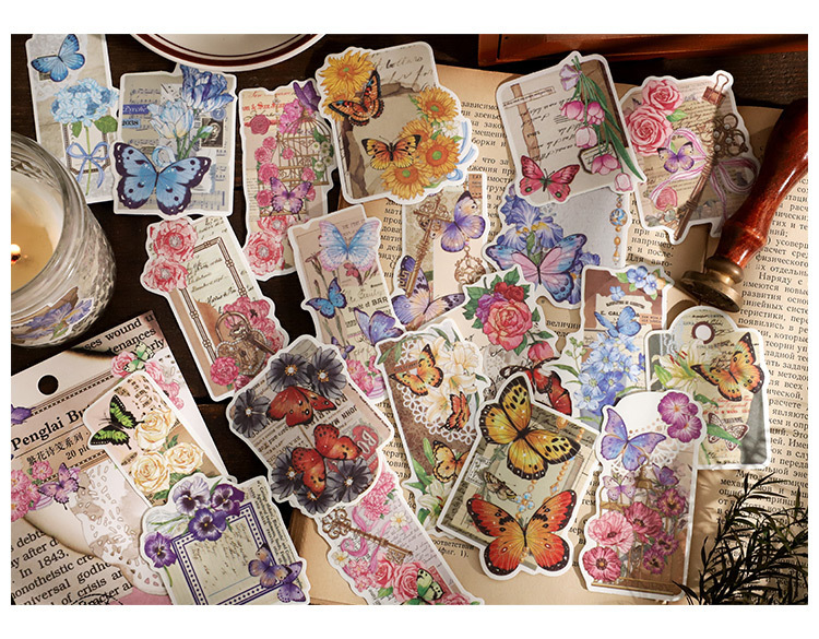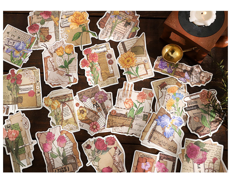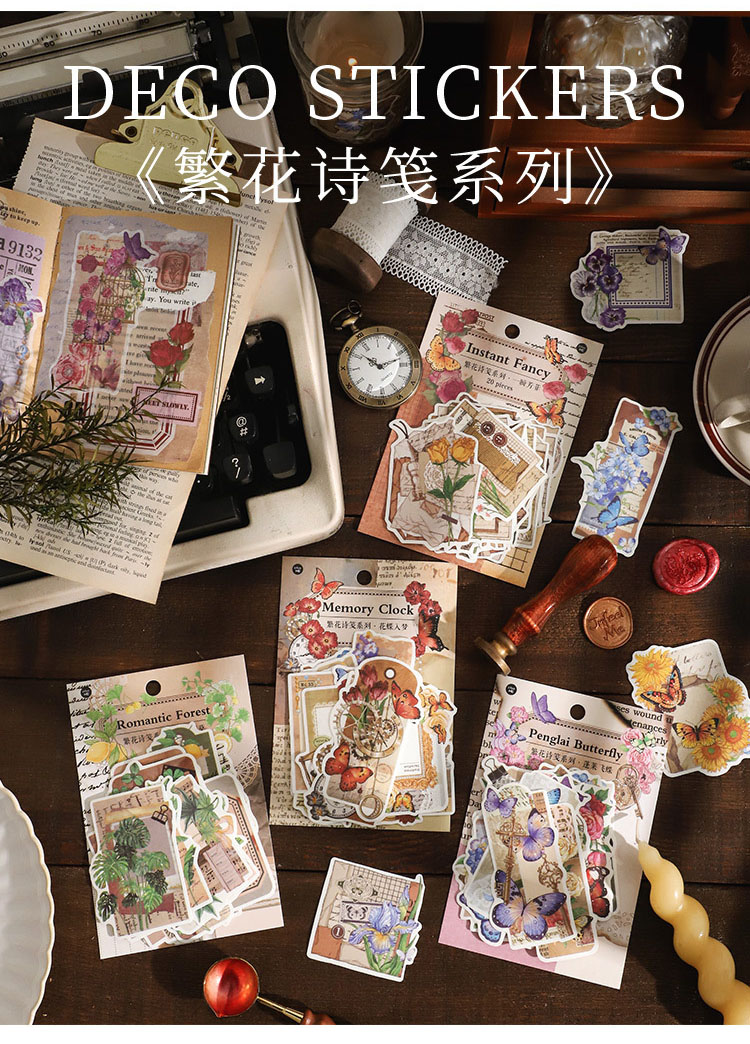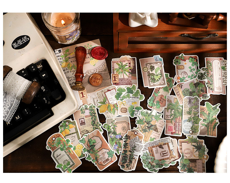 塩系文具 シール貼紙 封口貼 手帳素材 アンティーク 植物花葉蝶 春新作 イラスト 幾何学ラベル 40枚入