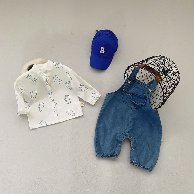 お勧め 春夏新作 男女子供服 デニムズボン 連体ズボン サロペット 熊 ブラウス シャツ上着 パンツ 66-90