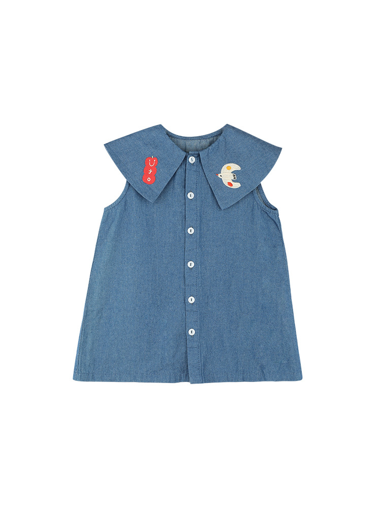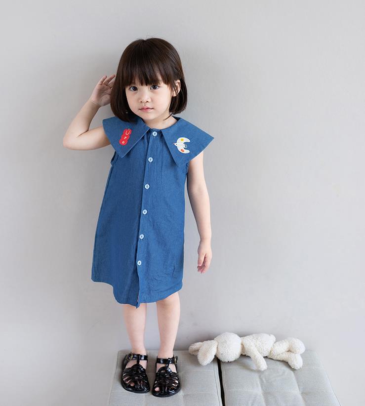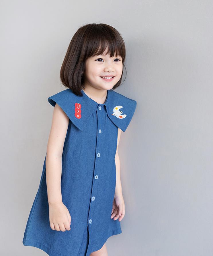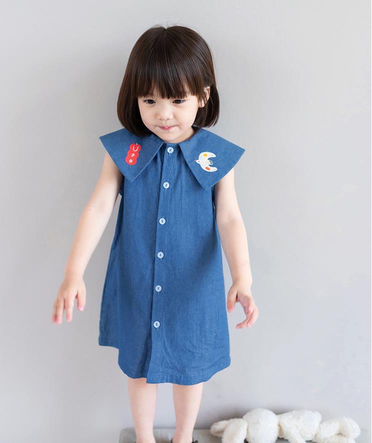 現在カテゴリ:全て商品 > お勧め 春夏新作 子供服 3-8歳女の子 袖なしワンピース デニムワンピ シャツドレス 刺繍 7-15