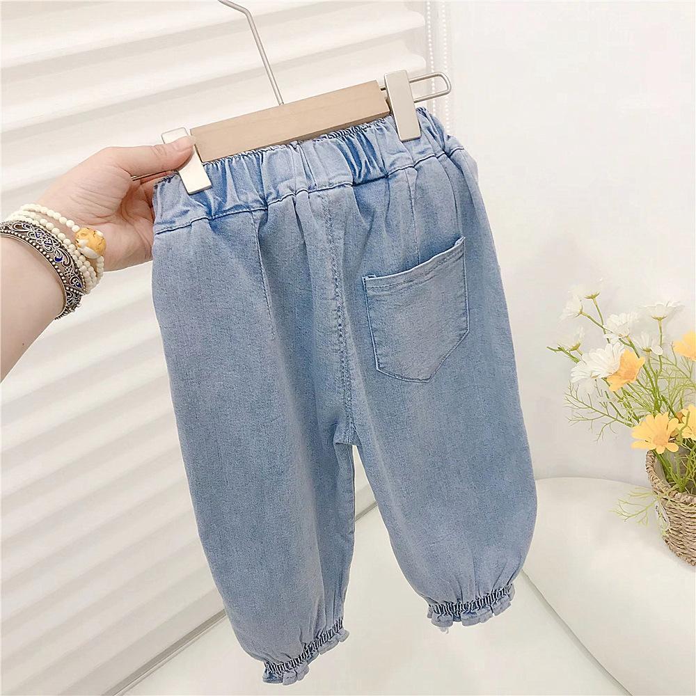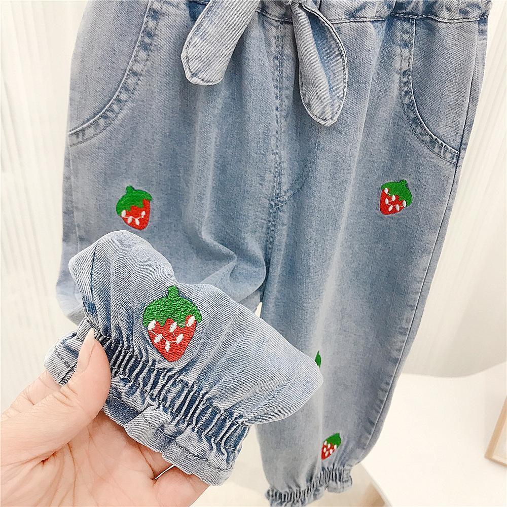 お勧め 春夏新作 九分丈パンツ デニムズボン ジーンズ ジーパン 女の子 苺 リボン 韓国風子供服 80-130