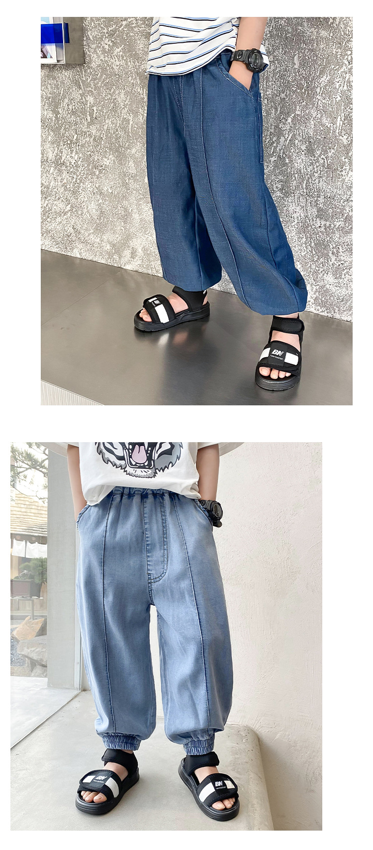 お勧め 春夏新作 ワイドパンツ デニムズボン ジーンズ ジーパン 薄い 2色 男の子 韓国風子供服 110-160