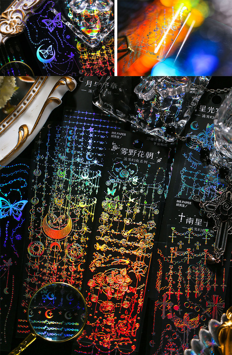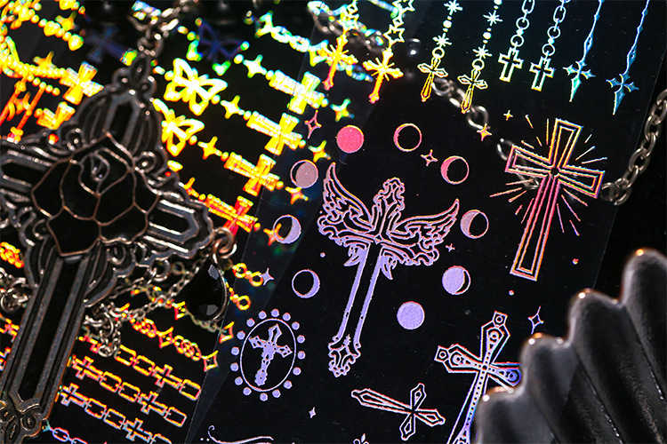 現在カテゴリ:全て商品 > 春夏 文具 PVCシール貼紙 手帳素材 封口貼 幾何学 チェーン 蝶 星月薔薇 アンティーク リボン十字架 4枚入